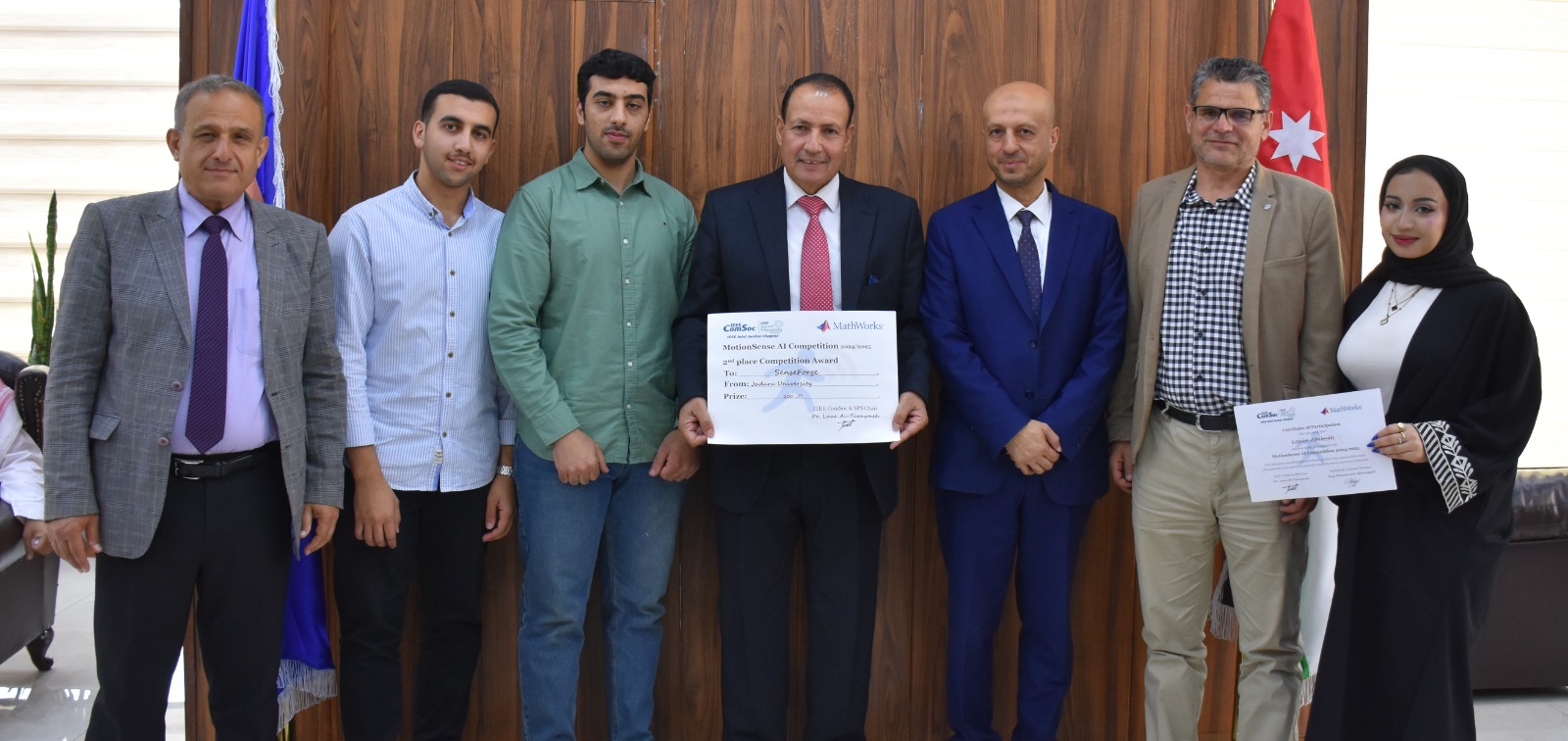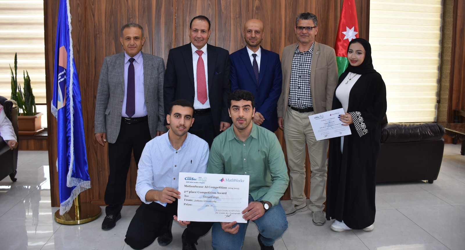كرّم رئيس جامعة جدارا الأستاذ الدكتور حابس الزبون طلبة كلية تكنولوجيا المعلومات الفائزين بالمركز الثاني في مسابقة Motion Sense AI Challenge على مستوى الجامعات الأردنية، التي نظمتها جمعية IEEE بالتعاون مع شركة MathWorks، بمشاركة 180 طالبًا وطالبة يمثلون 17 جامعة حكومية وخاصة.