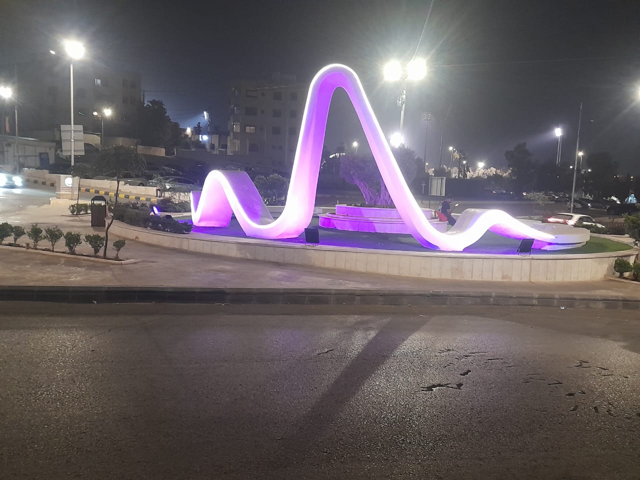 ويأتي دلالة اضاءة المبنى باللون البنفسجي على رمزية اهتمامه بمرضى الزهايمر وضرورة وتوفير الدعم النفسي والاجتماعي لهم، ليخفف من معاناتهم الناتجة عن التداعيات النفسية.