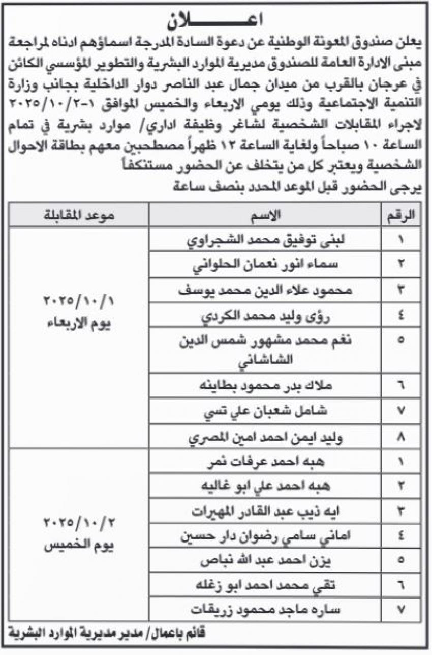 كما اعلنت وزارات ومؤسسات اسماء المدعوين لاجراء المقابلات الشخصية والامتحان التنافسي في وظائف معلن عنها سابقا.