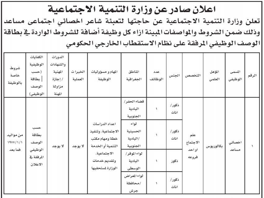 أعلنت وزارات ومؤسسات حكومية اليوم الثلاثاء عن حاجتها لتعبئة وظائف شاغرة.