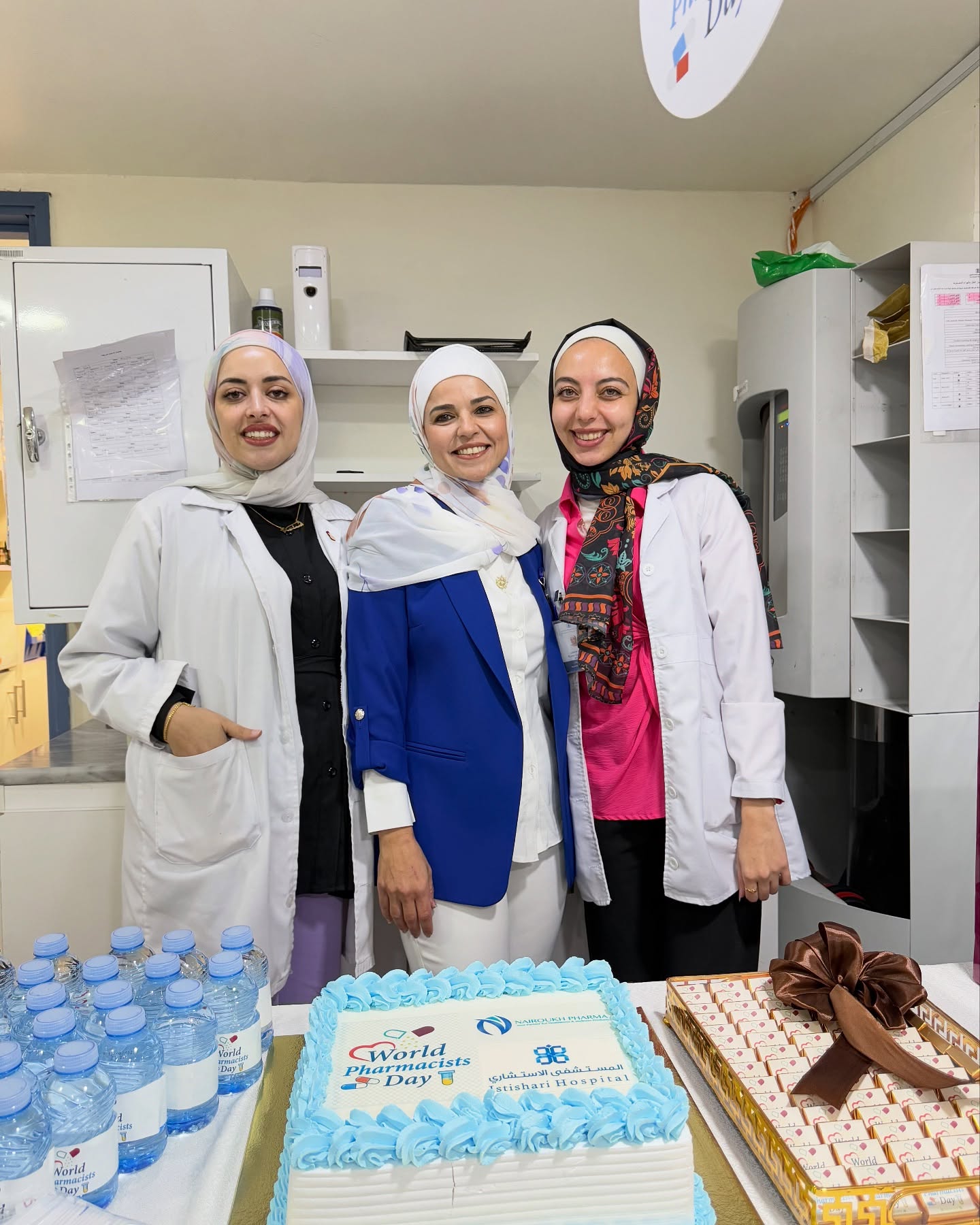 ووجهت إدارة المستشفى وكوادرها خلال فعالية احتفالية في المستشفى كلمات تحية وتقدير حيث قالوا "تحية تقدير وامتنان لكل الصيادلة الذين يشكّلون صلة الوصل بين العلم والإنسانية، ويساهمون يوميًا في حماية صحتنا ورعايتنا. شكرًا لجهودكم العظيمة "