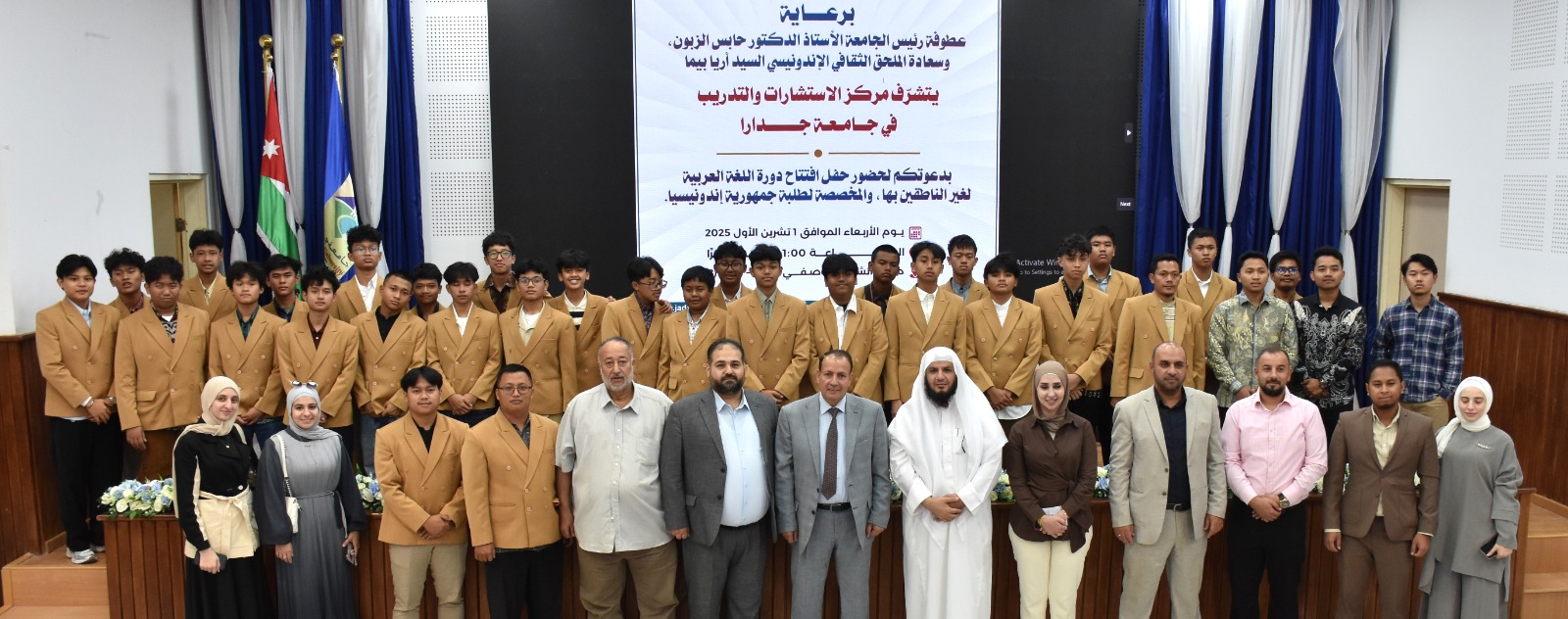 برعاية عطوفة رئيس جامعة جدارا الأستاذ الدكتور حابس الزبون، وبحضور سعادة الملحق الثقافي الإندونيسي السيد آريا بيما، افتتح مركز الاستشارات والتدريب في الجامعة دورة اللغة العربية للناطقين بغيرها المخصصة لطلبة جمهورية إندونيسيا، وذلك بالتعاون مع مؤسسة MBSQ.