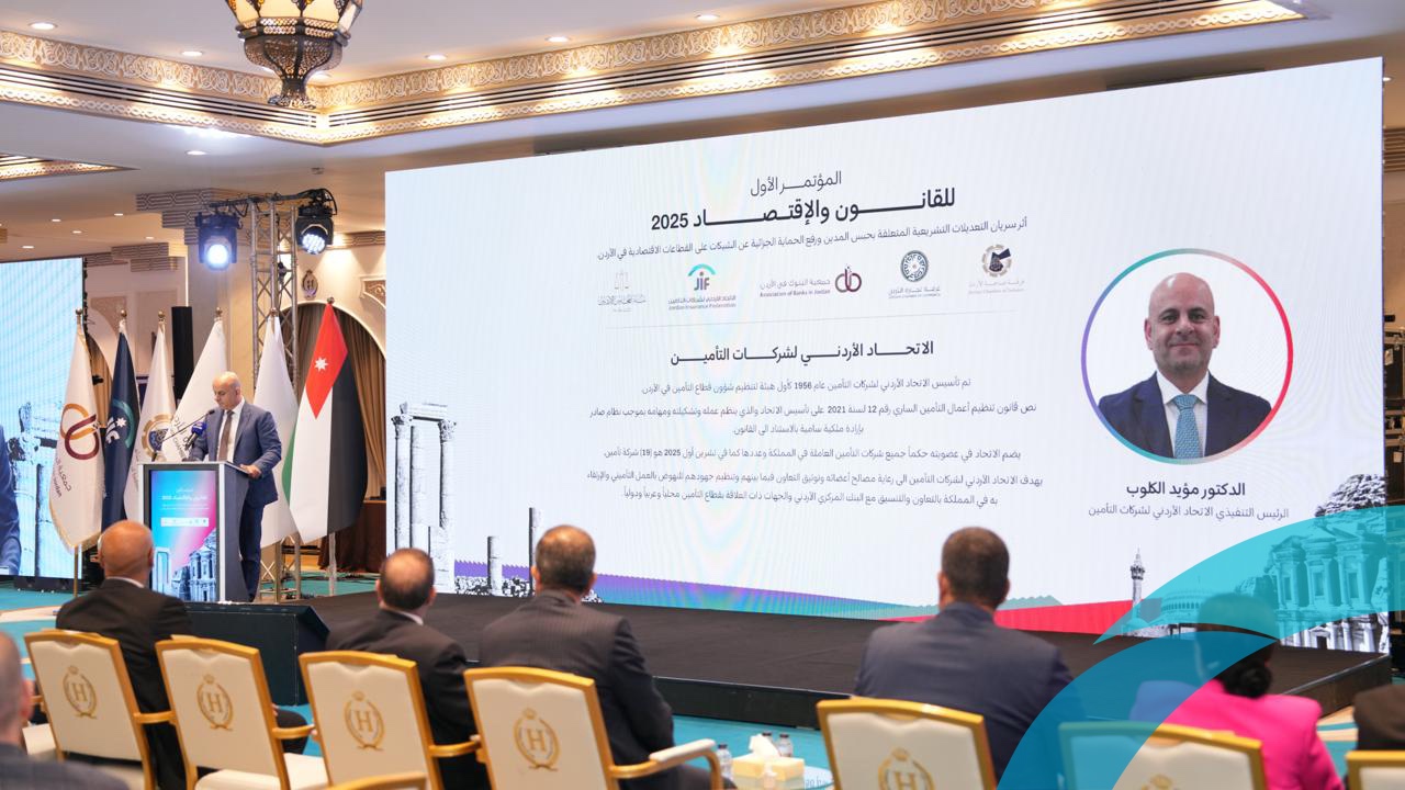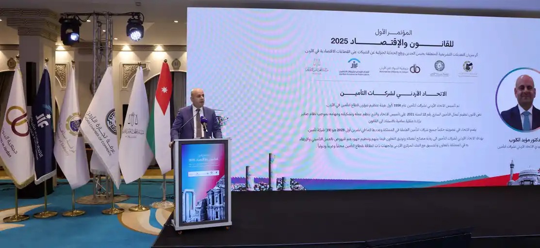 افتتح مساء يوم السبت الموافق 4/10/2025 أعمال المؤتمر الدولي الأول للقانون والاقتصاد 2025، بمشاركة ما يزيد عن 200 مشاركا بتنظيم مشترك بين الاتحاد الاردني لشركات التأمين ونقابة المحامين الأردنيين وجمعية البنوك في المملكة وغرفة صناعة الأردن وغرفة تجارة الأردن.