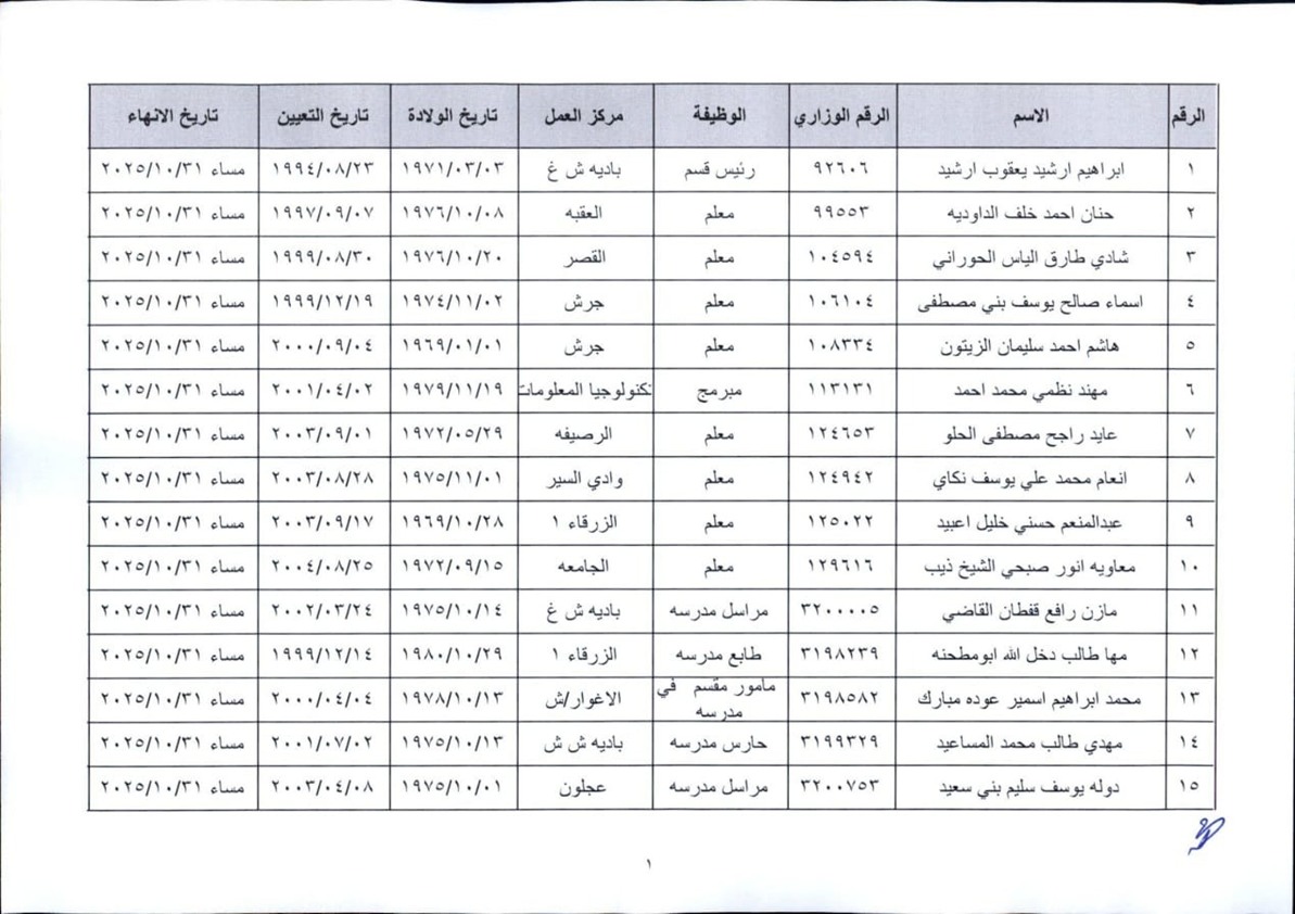 انهاء خدمات موظفين في وزارة التربية والتعليم - أسماء