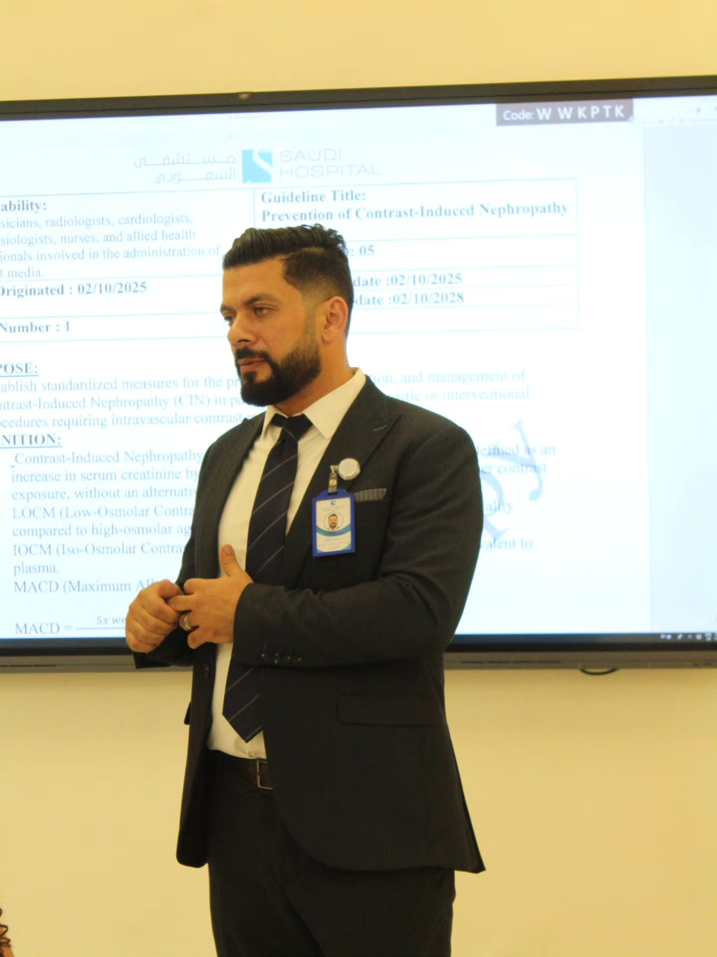 في اطار برنامج التعليم الطبي المستمر وضمن نشاطات لجنة الحوكمة السريرية، أقيمت أمس في مستشفى السعودي مناقشات طبية بعنوان Minimizing the Risk of Contrast Induced Nephrology CIN قدمها د. قيس غنما - استشاري طب الباطنية والكلى وزراعة الكلى، بالاضافة الى مناقشة بعنوان Spesis قدمها د. أنس أحمد - استشاري العناية الحثيثة والباطنية.