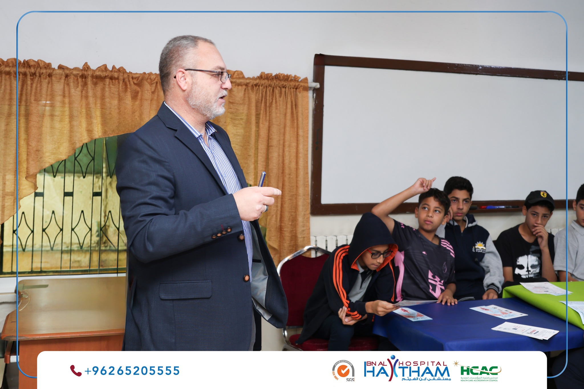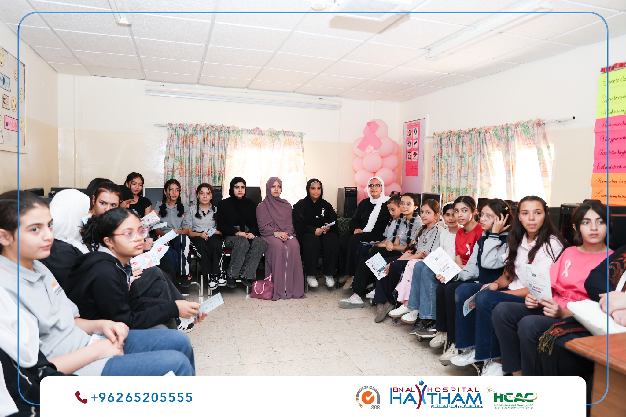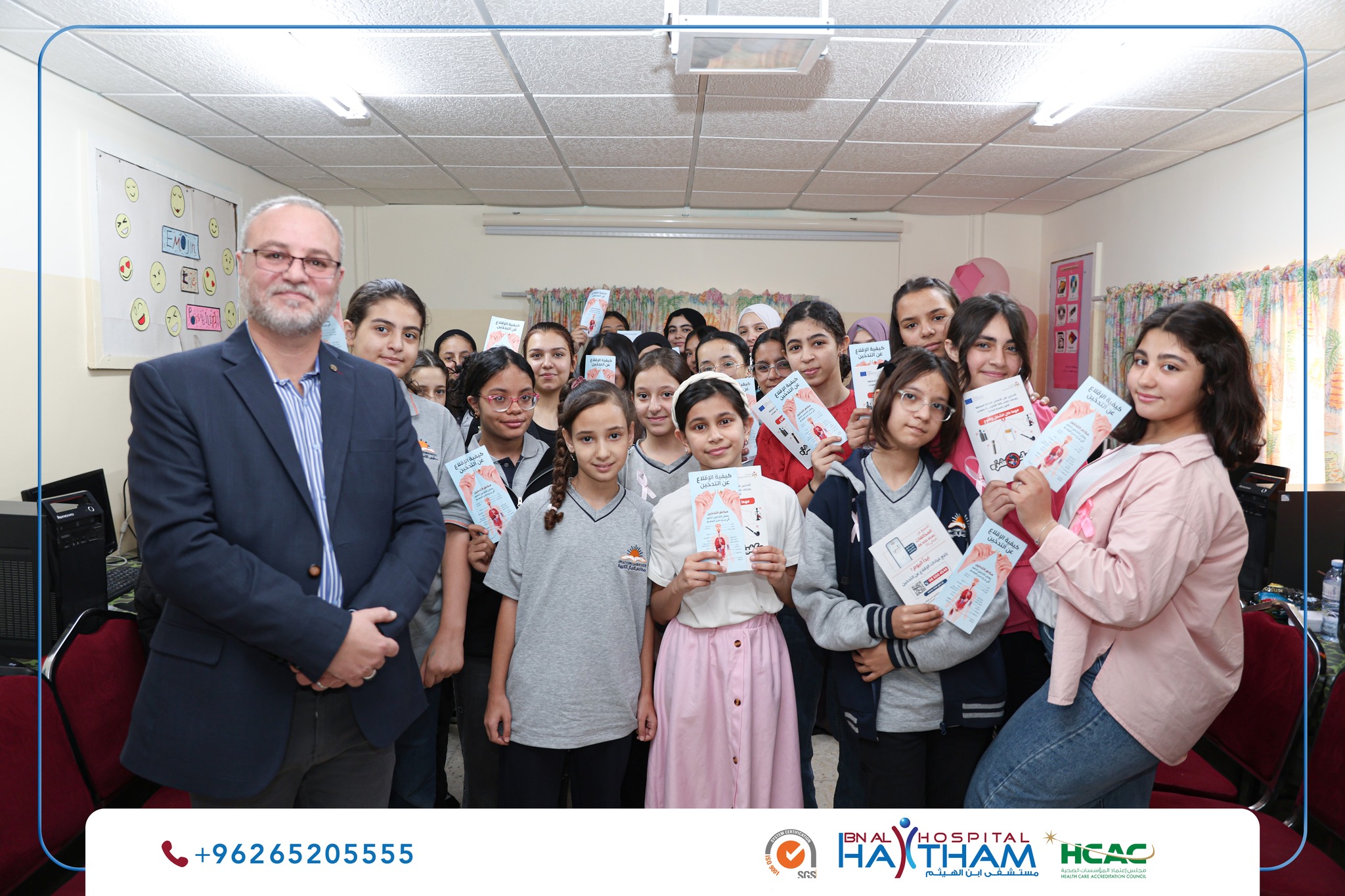 نظم مستشفى ابن الهيثم في إطار مسؤوليته المجتمعية وحرصه على نشر الوعي الصحي، بالتعاون مع جمعية بادري للتنمية والتأهيل الخيرية محاضرة توعوية في مدرسة الآمال الكبيرة حول مكافحة التدخين وأضراره الصحية، قدّمها الدكتور يزن خير استشاري الأمراض الباطنية وأخصائي الأمراض الصدرية وتنظير القصبات الهوائية وأمراض النوم.