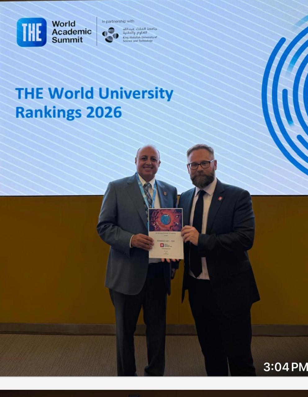 وأكد كلا من رئيس الجامعة الاستاذ الدكتور ساري حمدان والدكتور ماهر الحوراني رئيس هيئه المديرين أن هذا التقدم يعكس التزام الجامعة برسالتها نحو التميز والإبداع والابتكار، مشيران إلى أن الاستثمار في البحث العلمي والكوادر الأكاديمية المتميزة كان العامل الرئيس وراء هذا الإنجاز الذي يعزز مكانة الجامعة على الخارطة العالمية للتعليم العالي.