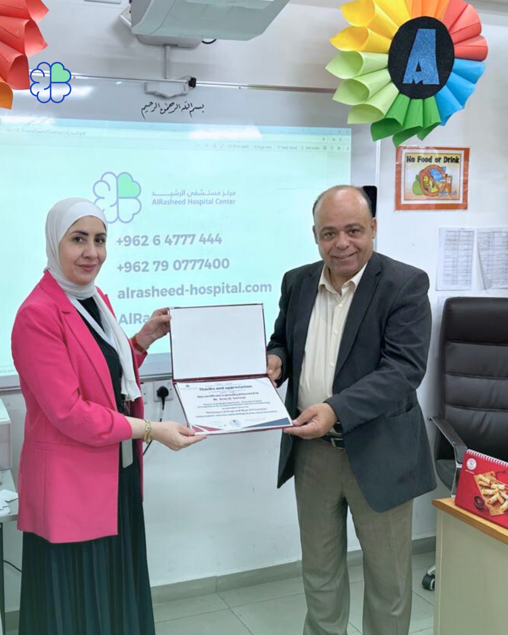 وفي نهاية اللقاء، قدمت إدارة المدرسة الشكر لـ مستشفى الرشيد، وقامت بتكريمه من خلال مندوبه، الأستاذ انس الطنطاوي، تقديراً لجهود المستشفى المبذولة في دعم الأنشطة التوعوية والتثقيفية.