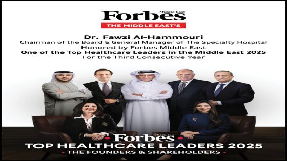 اختارت مجلة "فوربس الشرق الأوسط”، رئيس جمعية المستشفيات الخاصة، الدكتور فوزي الحموري، ضمن أقوى قادة الرعاية الصحية في الشرق الأوسط لعام 2025، حيث تشمل القائمة صُنّاع التغيير من الرؤساء التنفيذيين، والمؤسسين، والمساهمين والمستثمرين، الذين يُعيدون رسم ملامح منظومة الرعاية الصحية في المنطقة للعقد المقبل.