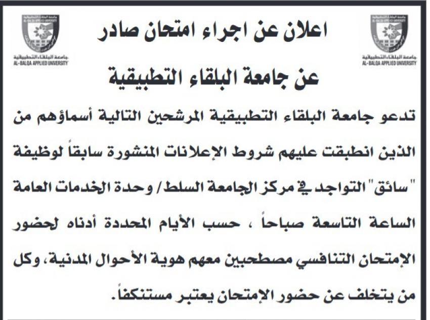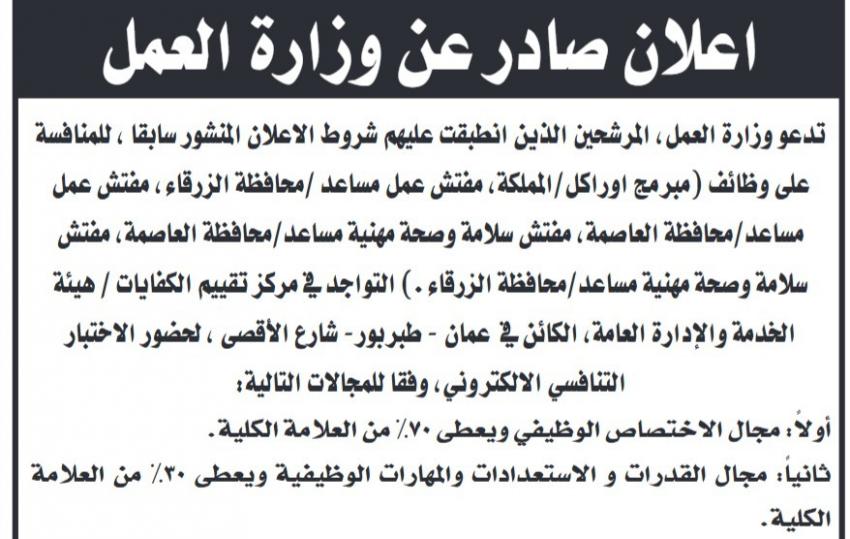 أعلنت مؤسسات حكومية مختلفة اليوم الأربعاء، عن دعوة من انطبقت عليهم شروط الوظائف المعلنة سابقا إلى الاختبار التنافسي. كما أعلنت مؤسسات اخرى عن دعوة اشخاص للمقابلات الشخصية.