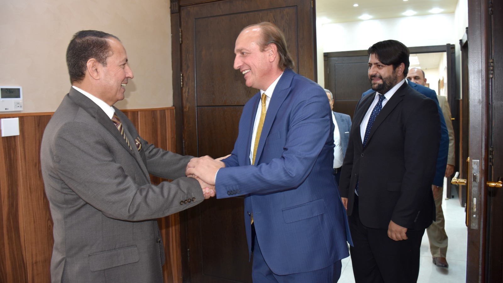 كان في استقبال الوفد كل من الأستاذ الدكتور حابس الزبون، رئيس الجامعة، والأستاذة الدكتورة إيمان البشيتي، نائب رئيس الجامعة، والأستاذ الدكتور عبدالرحيم المراشدة، عميد كلية الآداب واللغات، والأستاذ الدكتور لقمان الربابعة، نائب عميد كلية الآداب واللغات ومدير مركز اللغات.