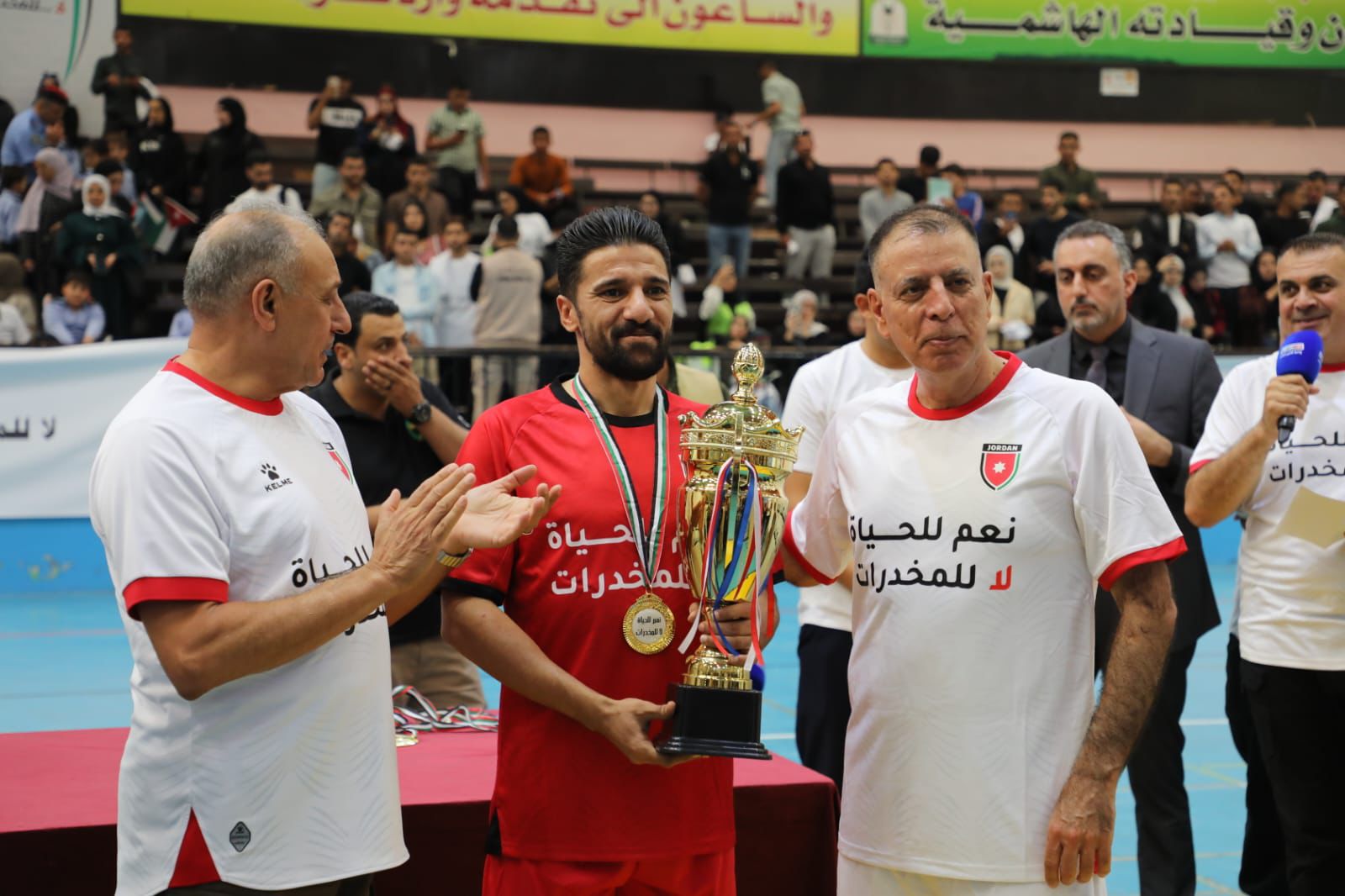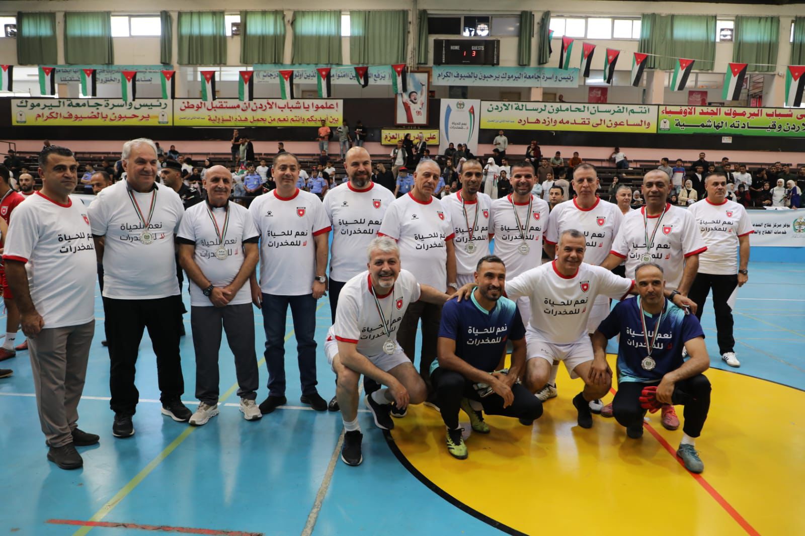 وتخلل الحفل مباراة وديّة جمعت بين لاعبي المنتخب الوطني القدامى والحاليين، أقيمت في أجواء مفعمة بالحماس والروح الرياضية، إيصالاً لرسالة شبابية هادفة مفادها أن الرياضة طريق للحياة... لا للمخدرات.