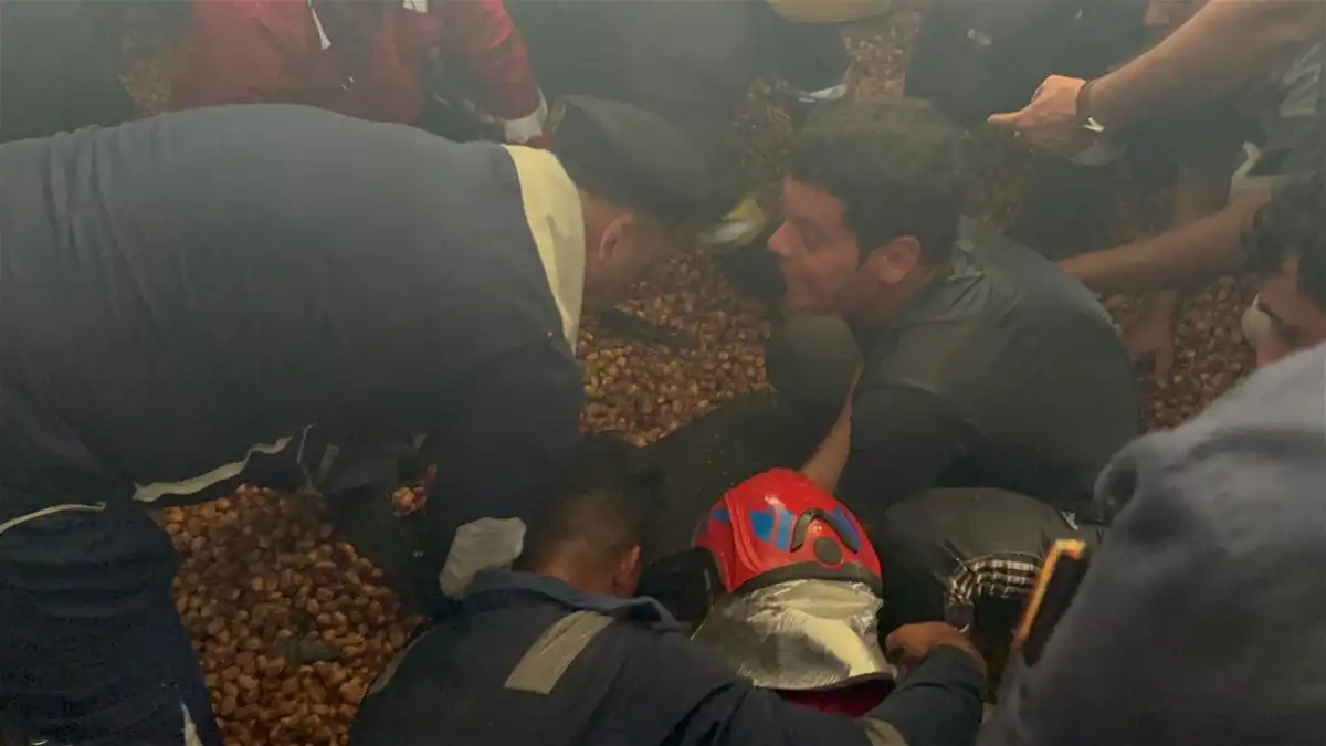 أنقذت فرق الدفاع المدني في محافظة كربلاء العراقية، أربعة عمال انهارت فوقهم كميات كبيرة من التمور في أحد المخازن التي يعملون بها.