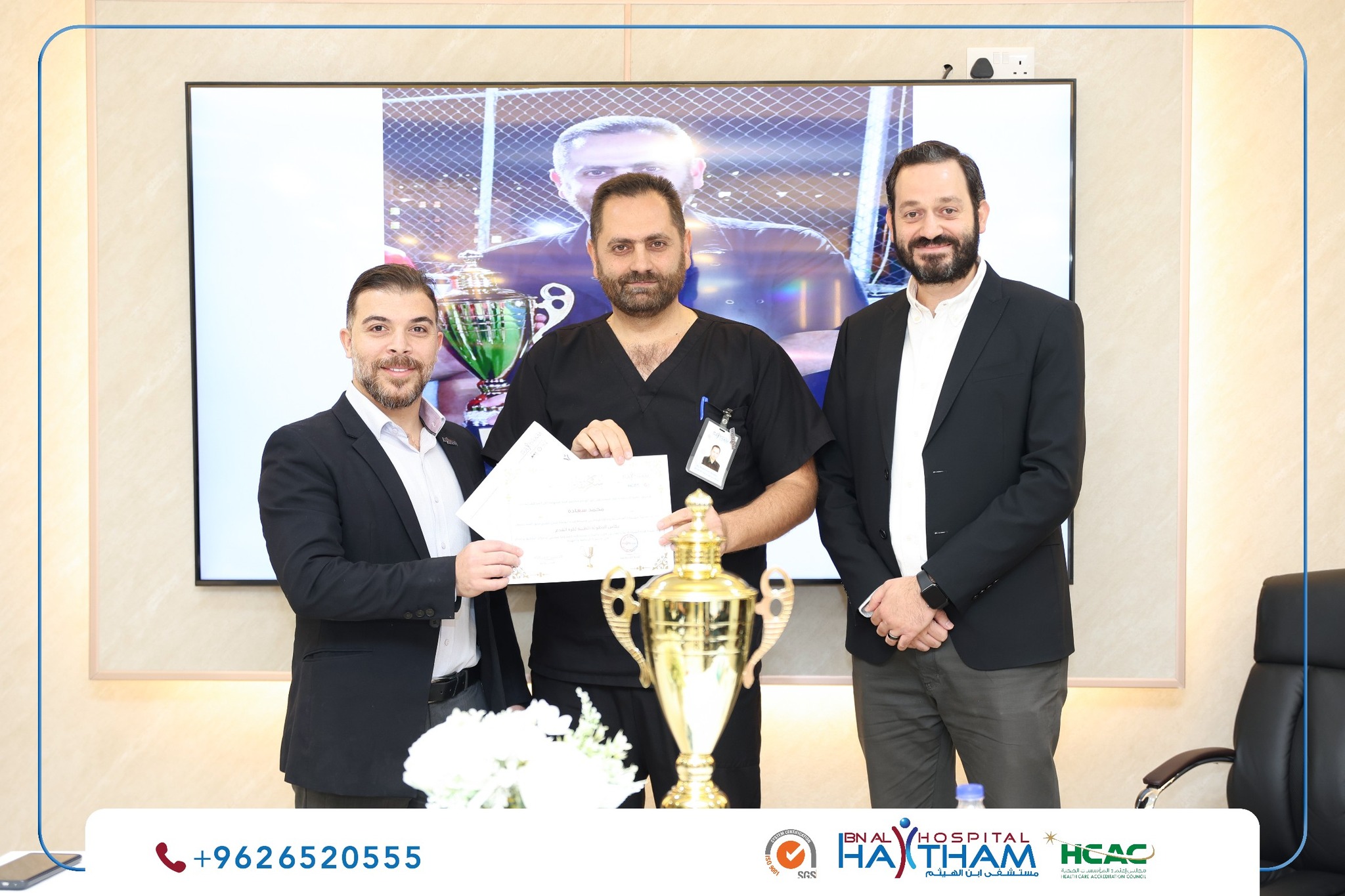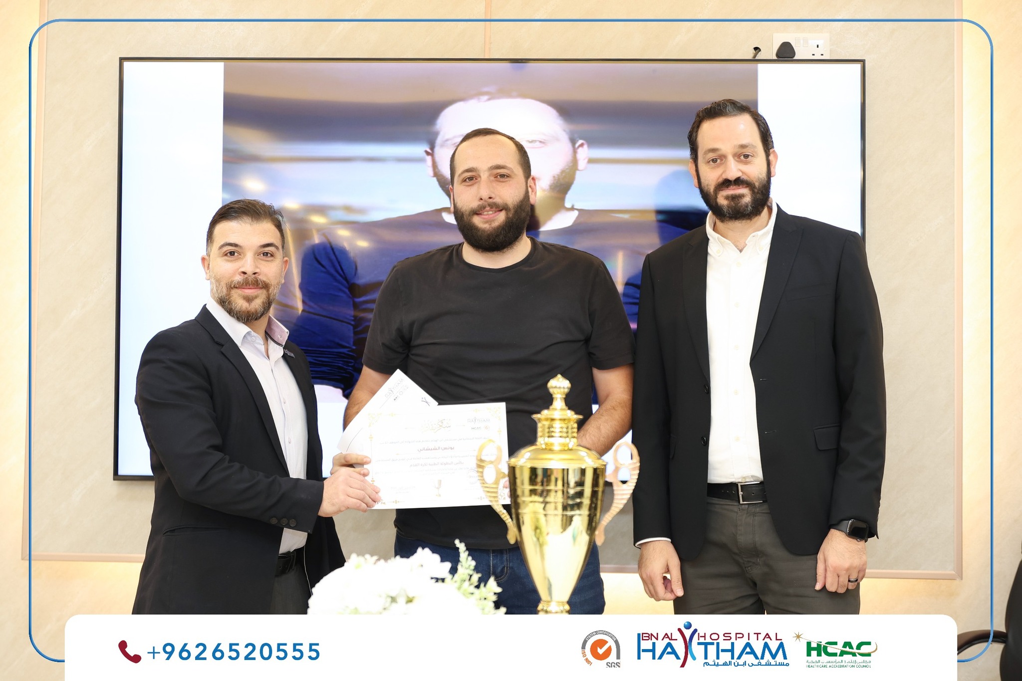 أقامت اللجنة الاجتماعية في مستشفى ابن الهيثم اليوم حفل تكريم خاص لفريق المستشفى، بعد تحقيقه لقب البطولة الطبية لكرة القدم – بطولة المرحوم عبد الرحيم عيسى، تقديرًا لإنجازهم المشرّف وتمثيلهم المتميز للمستشفى.