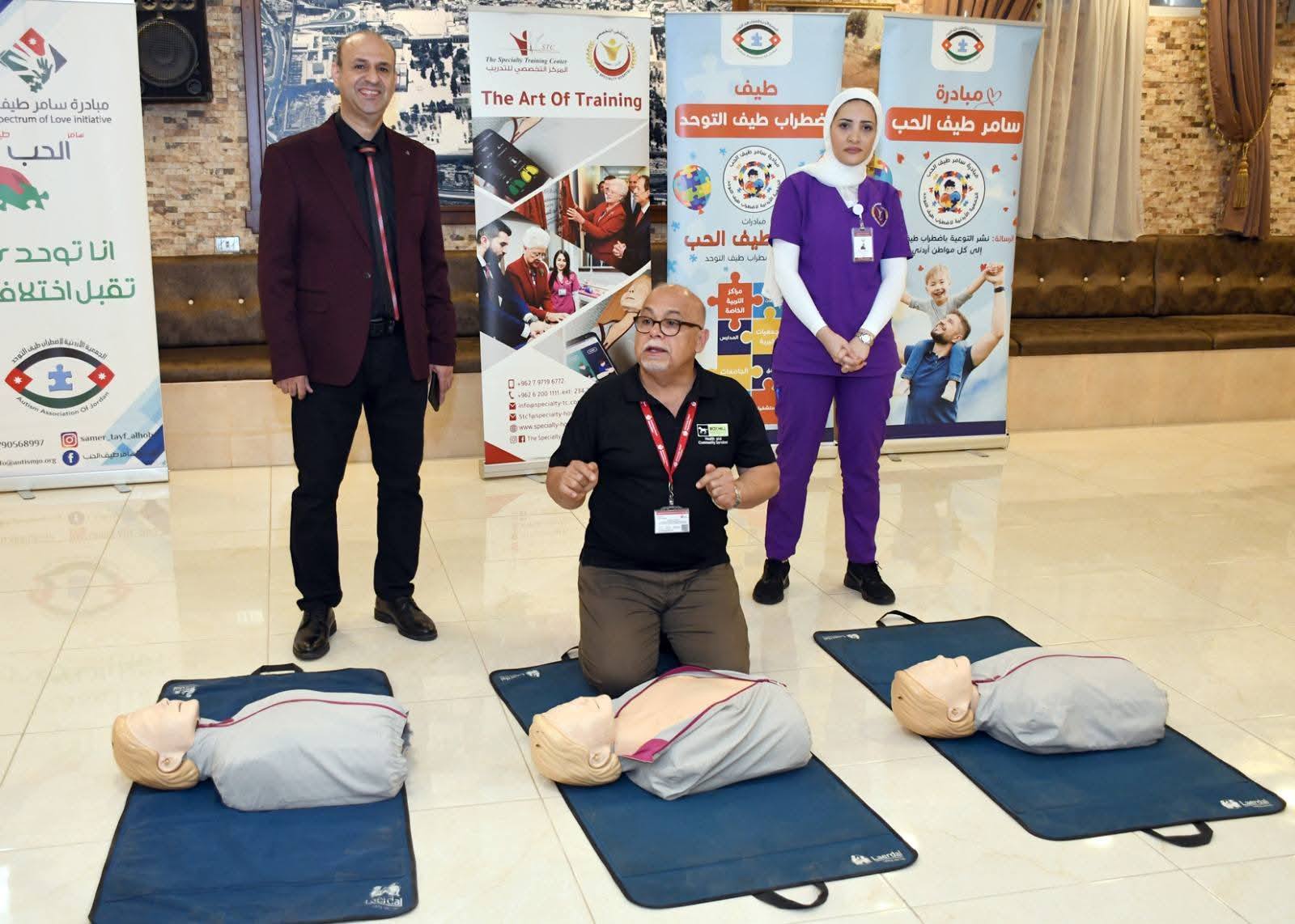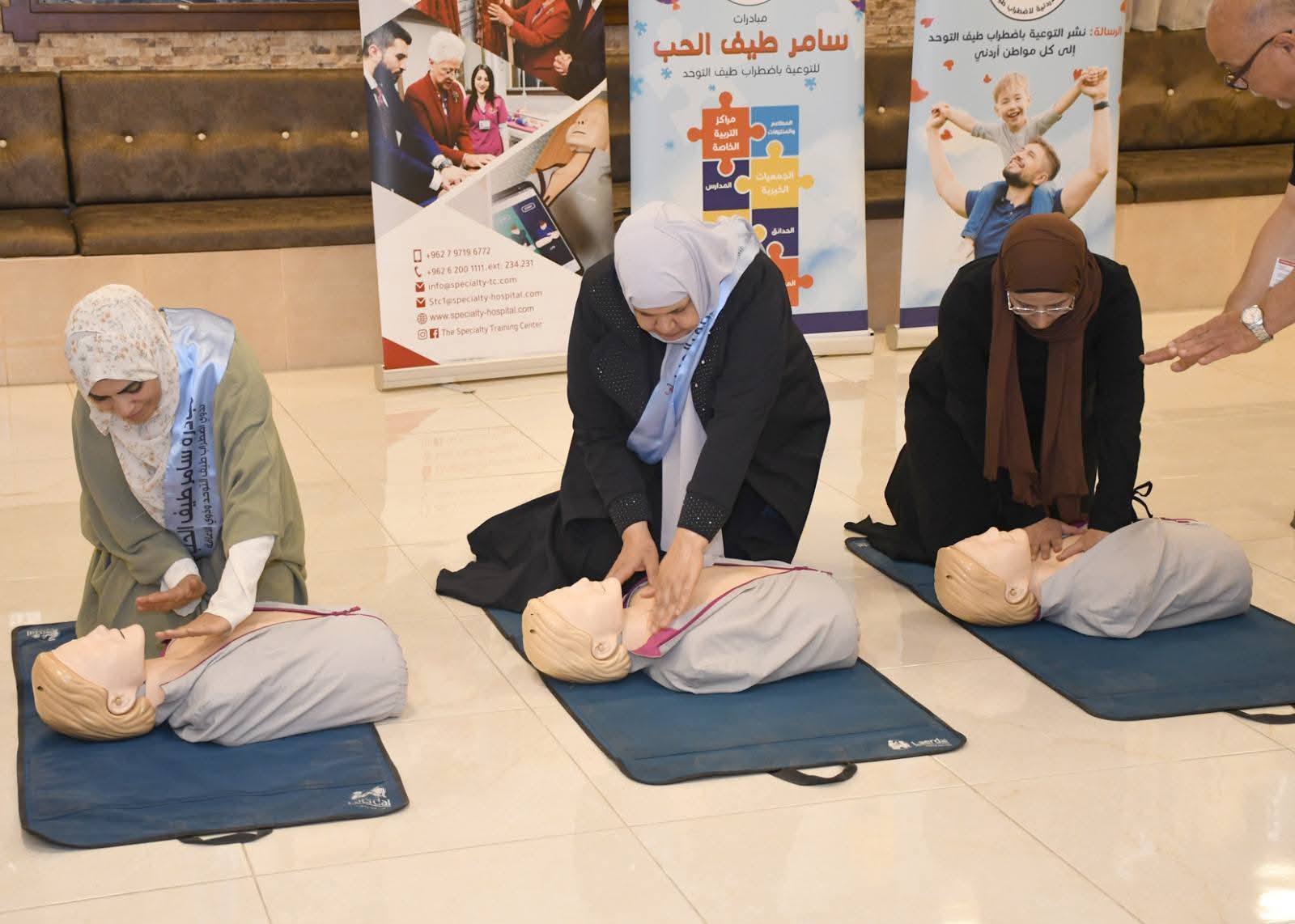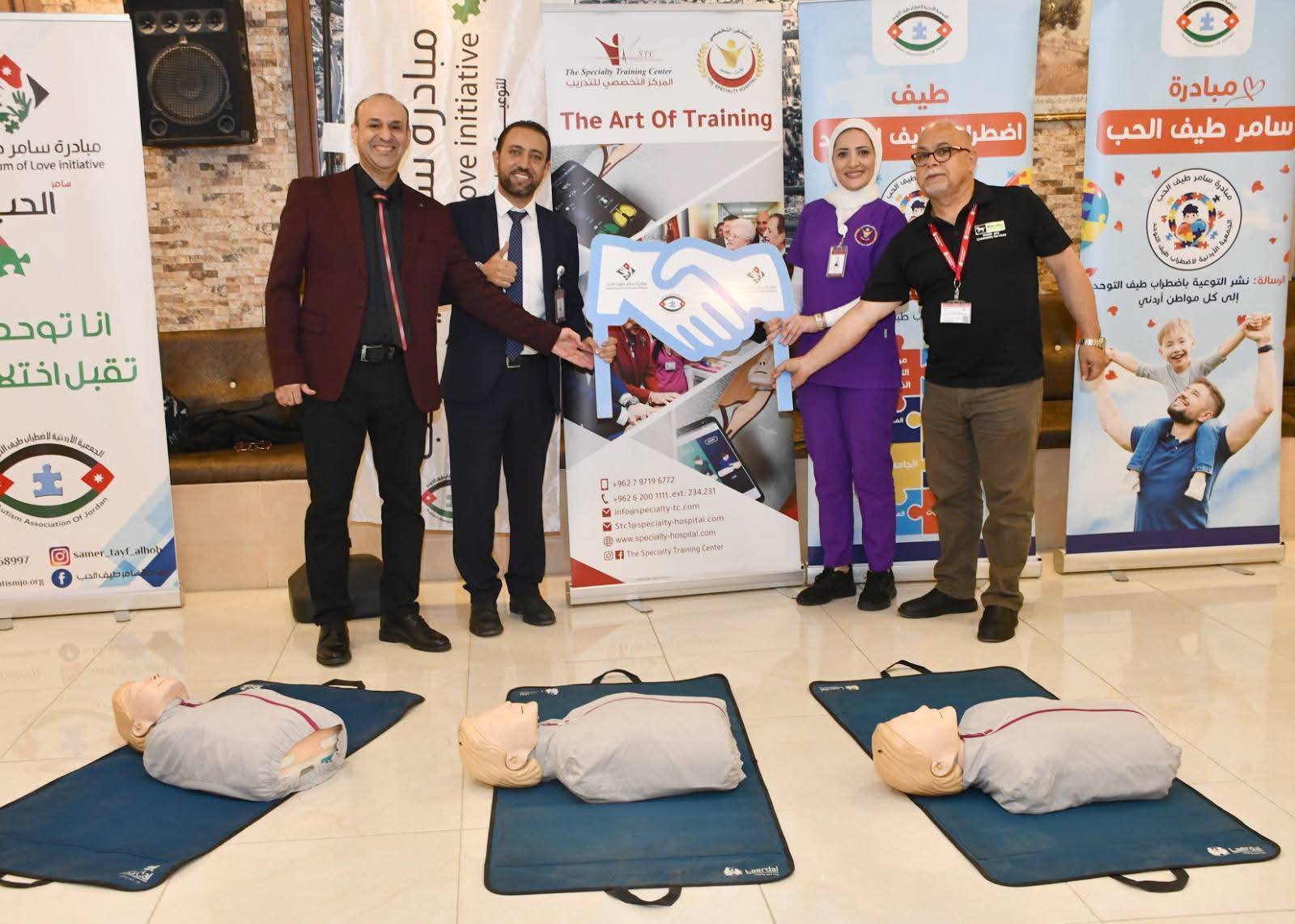 في إطار التشاركية والتواصل مع المجتمع المحلي و المسؤولية المجتمعية ، نظم المركز التخصصي للتدريب في المستشفى التخصصي بالتنسيق مع الجمعية الأردنية لاضطراب طيف التوحد( مبادرة سامر طيف الحب) و( مبادرة موئلكم فرحة) فعالية توعوية يوم الثلاثاء الموافق 28/10/2025 وذلك تزامنا مع حملة شهر أكتوبر شهر منقذ القلب والتي أطلقتها جمعية القلب الأمريكية حول الانعاش القلبي الرئوي باستخدام الأيدي فقط للتعامل مع حالات توقف القلب والتنفس ، حيث تم التطبيق العملي على انعاش القلب الرئوي باستخدام الأيدي فقط ضمن توصيات جمعية القلب الأمريكية وذلك تحت إشراف مدربين معتمدين من قبل الجمعية تخللها أيضاً بعض المواضيع المهمة في الاسعافات الأولية بناءاً على طلب الأمهات،