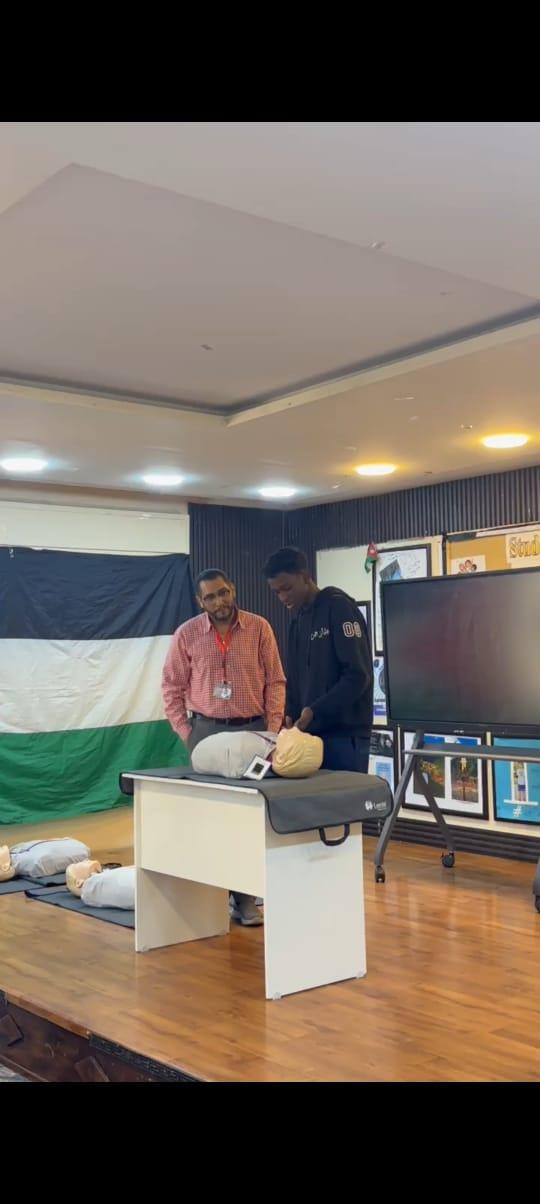 واستهدف النشاط أولياء الأمور والطلبة وأعضاء الهيئتين الإدارية والتدريسية في المدرسة، حيث تضمن تدريبًا عمليًا على مهارات الضغطات الصدريةلإنقاذ الحياة في حالات توقف القلب المفاجئ،إلى جانب شرح مفصل لخطوات الاستجابة السريعةوالتعامل الأمثل مع الحالات الطارئة.
