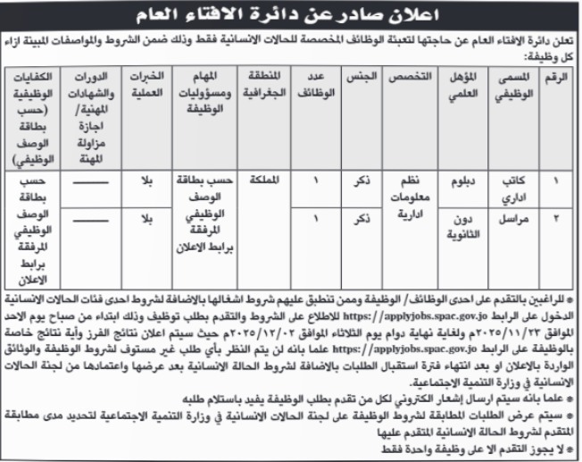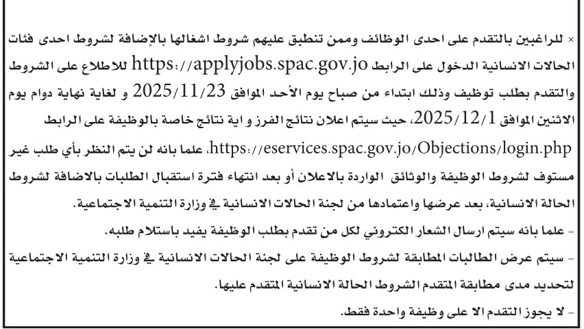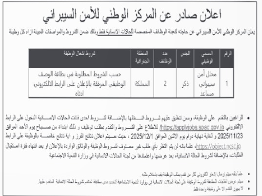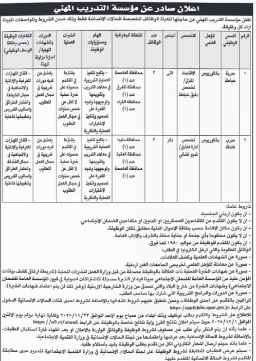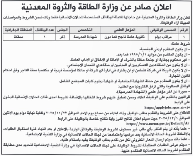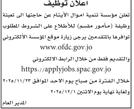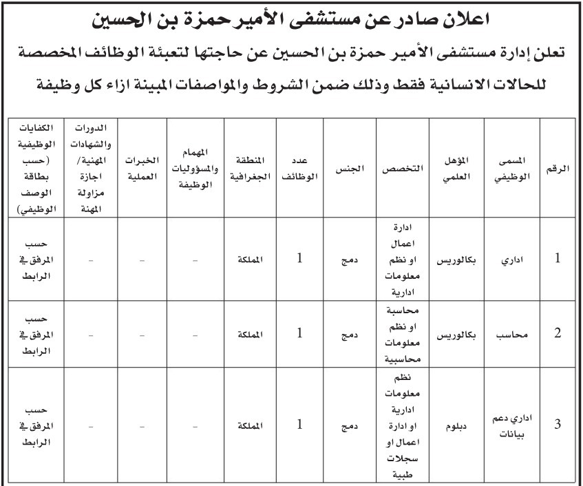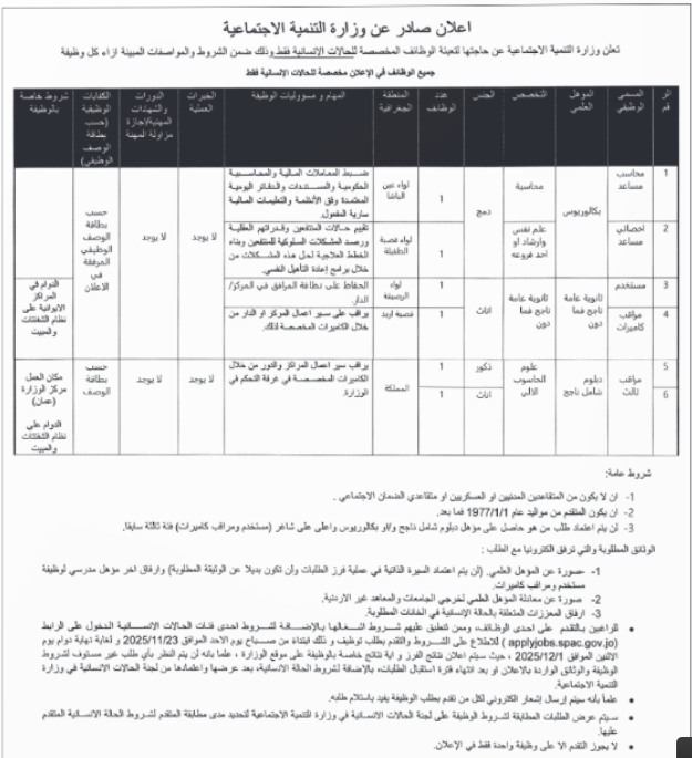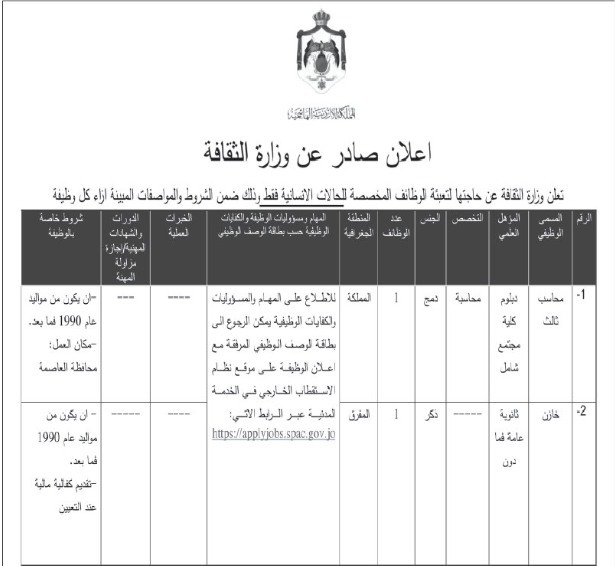 اعلنت وزارات ومؤسسات حكومية اليوم الاحد عن حاجتها لتعبئة وظائف شاغرة.