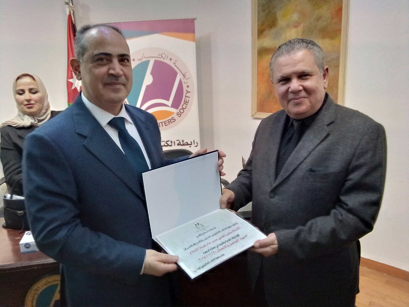 وفي نهاية الأمسية تفضل رئيس الجمعية أبو عبيد بتقديم شهادات التكريم تقديرا للمشاركين في الامسية.