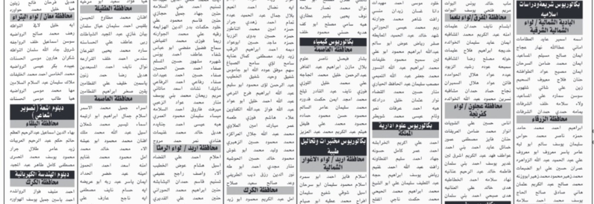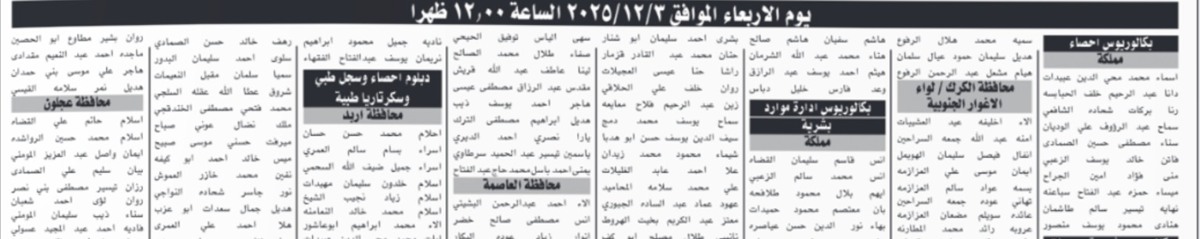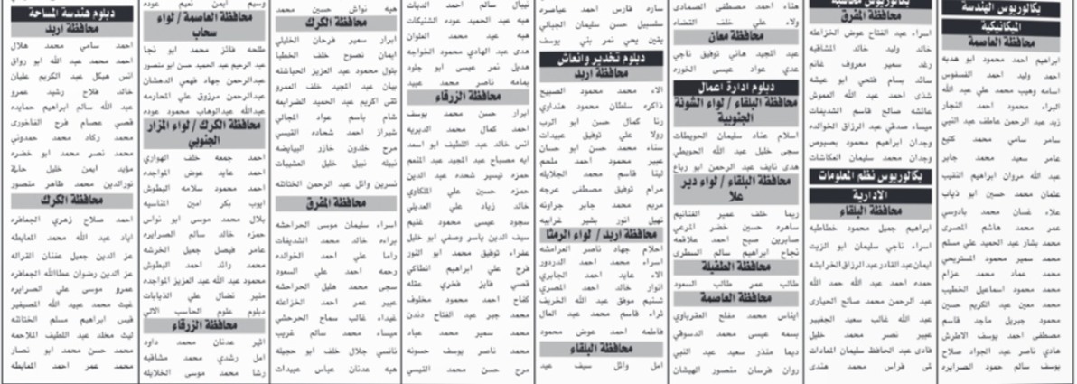 دعت عدد من الدوائر الحكومية، اليوم الخميس التالية أسماؤهم لحضور الامتحان التنافسي