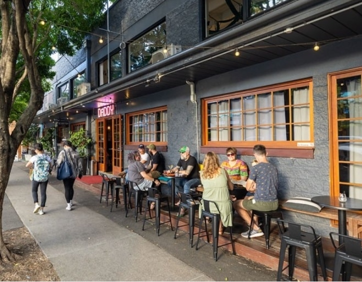 يعكس شارع مونتاغو في بريسبان الثقافة الفنية والطهي الحي، مع مقاهي ومطاعم صغيرة ومواقع للموسيقى الحية.