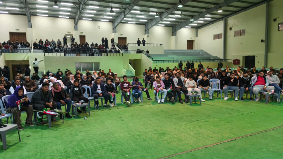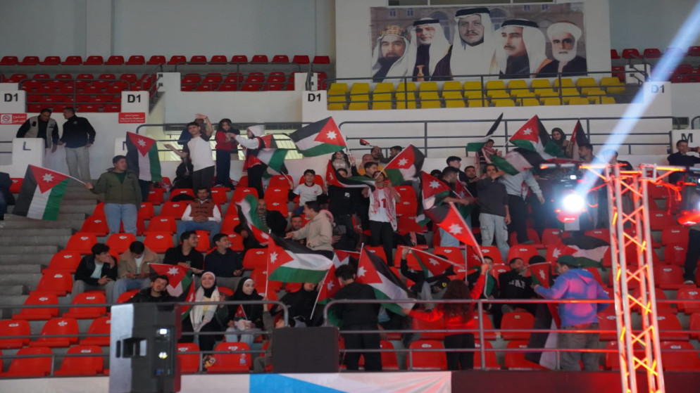 تؤازر الجماهير الأردنية منتخب النشامى خلال مواجهته مع المنتخب الإماراتي على ملعب البيت في الدوحة، ضمن بطولة كأس العرب الفيفا 2025.
