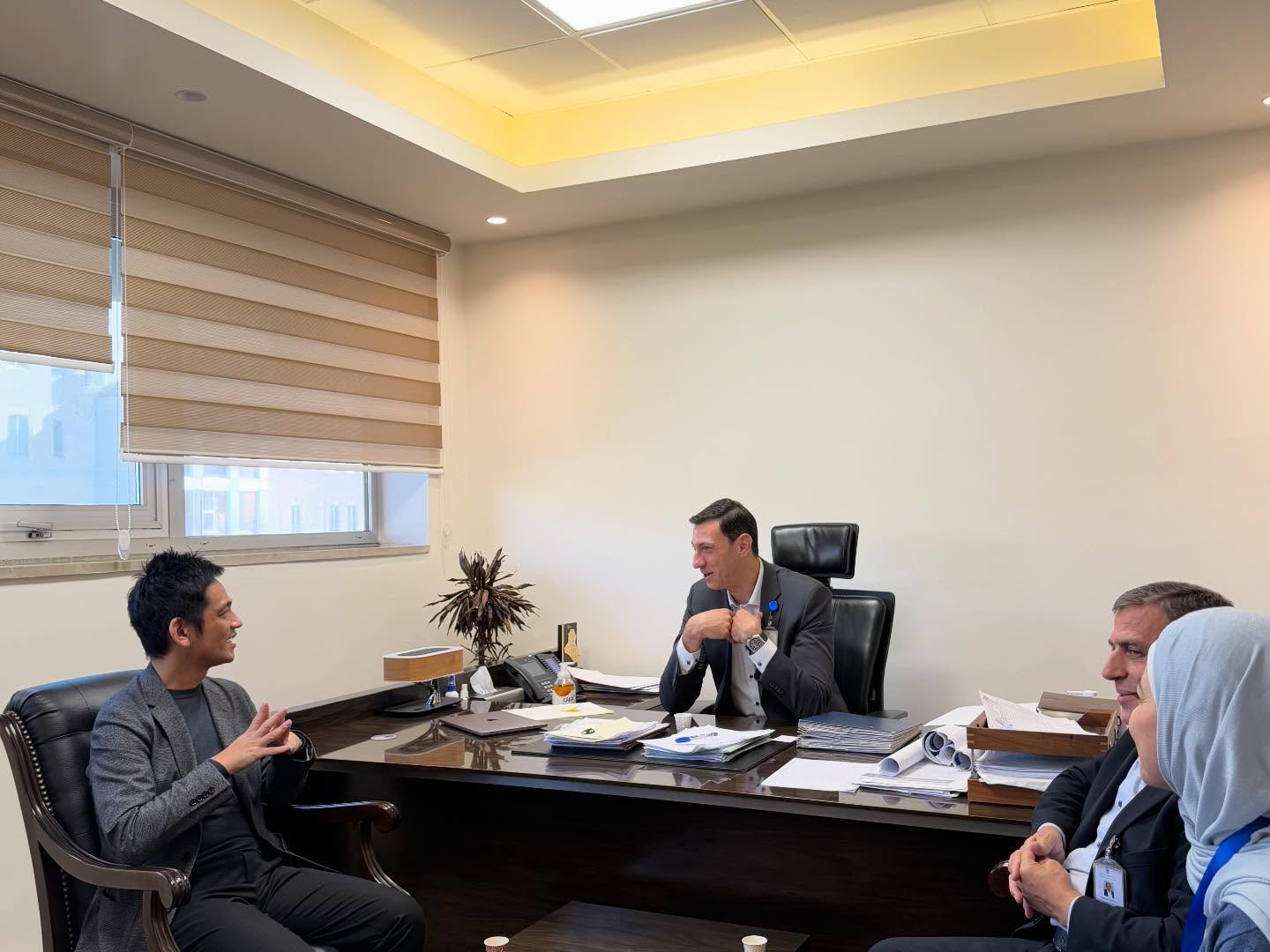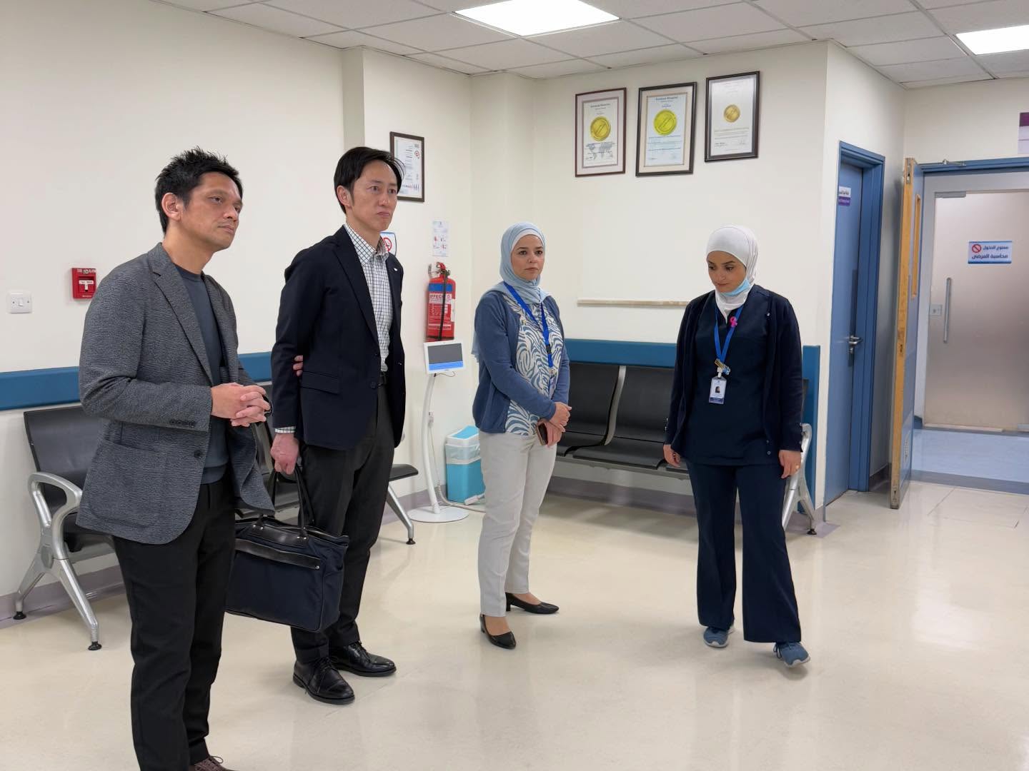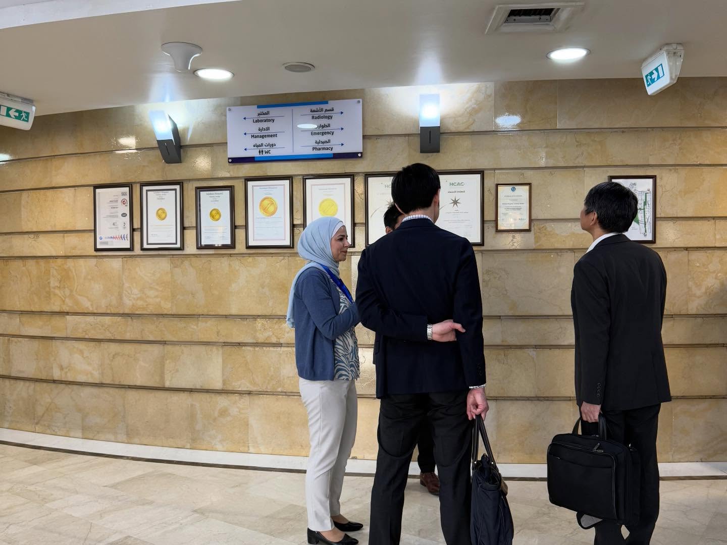 مدير المستشفى الدكتور طارق اللوزي، والمدير الفني الدكتور محمود أبو عبيلة، ومديرة الصيدلية الدكتورة عبير البشايرة. وقد قدّم المدير الفني نبذة موجزة عن المستشفى والمنظومة الصحية في المملكة، فيما استعرض الدكتور طارق اللوزي واقع الصناعات الدوائية في الأردن والتحديات التي تواجهها والرؤى المستقبلية لتطويرها.