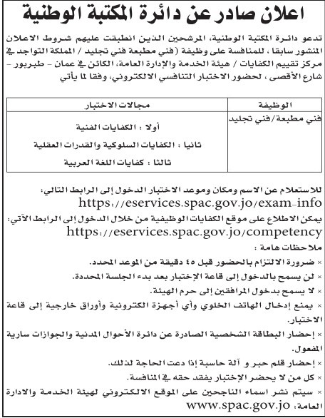دعت دوائر حكومية، اليوم الأحد المرشحين الذين انطبقت عليهم شروط الاعلان المنشور سابقا للامتحان التنافسي.