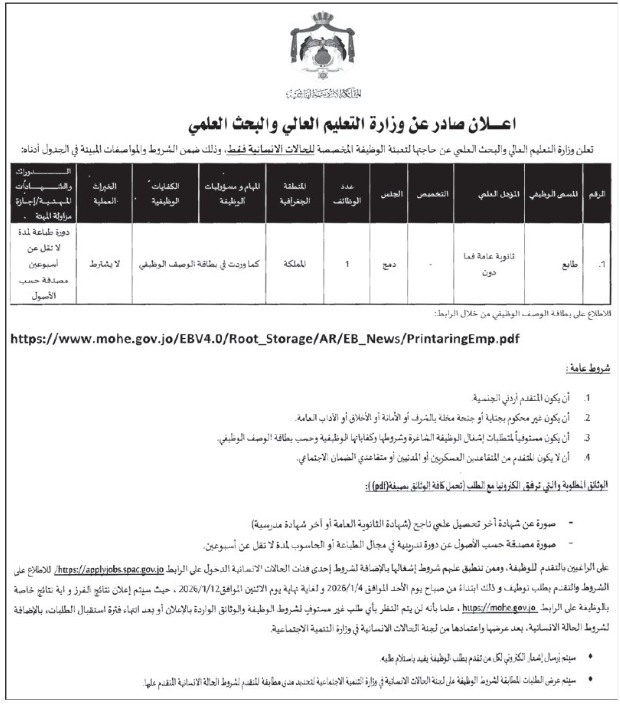اعلنت دوائر حكومية، اليوم الاثنين عن حاجتها لتعبئة وظائف شاغرة.
