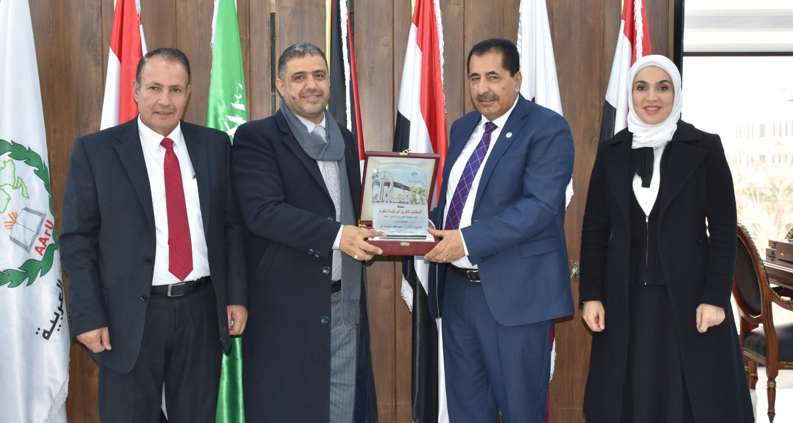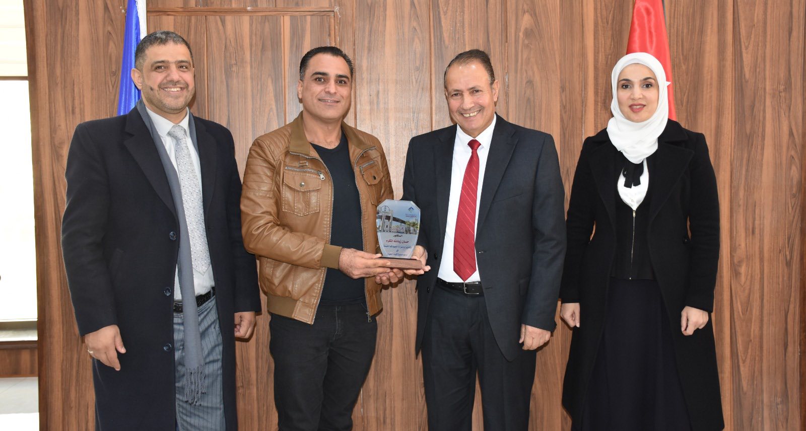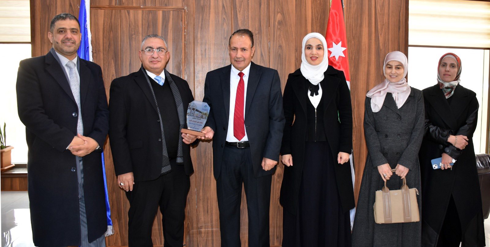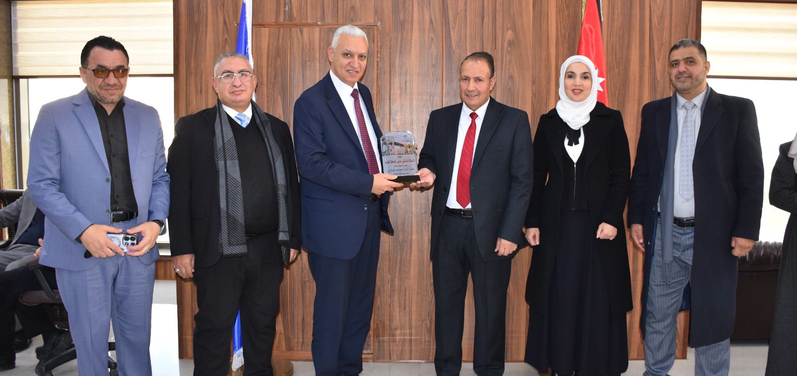 وفي ختام اللقاءات، قام رئيس الجامعة بتكريم الضيوف باسم كلية العلوم، فيما قدّم عميد الكلية دروعًا تكريمية لحاكمية الجامعة، تقديرًا لجهودها في دعم مسيرة التطوير والشراكة المؤسسية في جامعة جدارا.