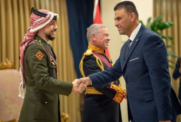 * جلالة الملك كرمني في عام 2024 بميدالية اليوبيل الفضي ووزير الزراعة السابق حنيفات حاربني