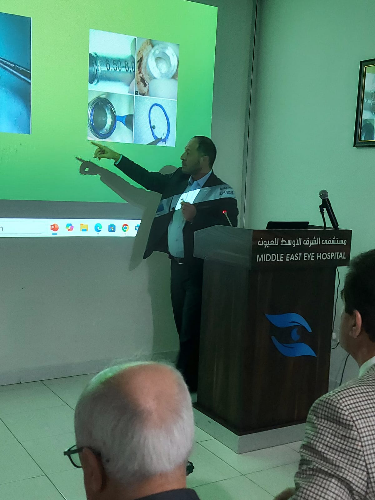 بحضور الدكتور موسى بيضون مدير مستشفى الشرق الأوسط للعيون نظم في قاعة المستشفى محاضرة طبية علمية بعنوان Keratoconus: Who c.a.i.r.s قدمها الدكتور علاء الشلبي- استشاري طب وجراحة العيون حضرها نخبة من أطباء مستشاري ومقيمي طب وجراحة العيون ومعنيين في طب العيون.