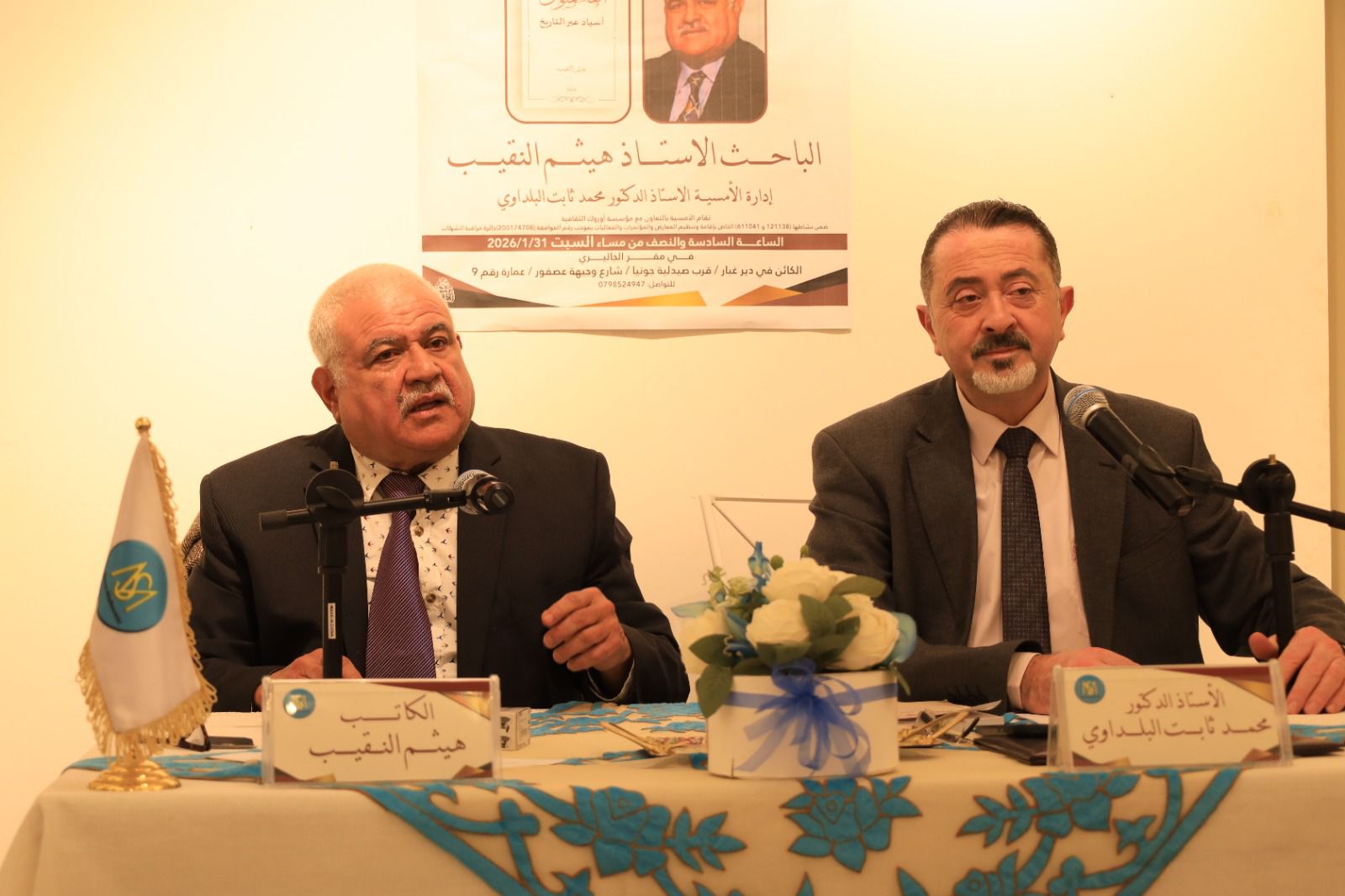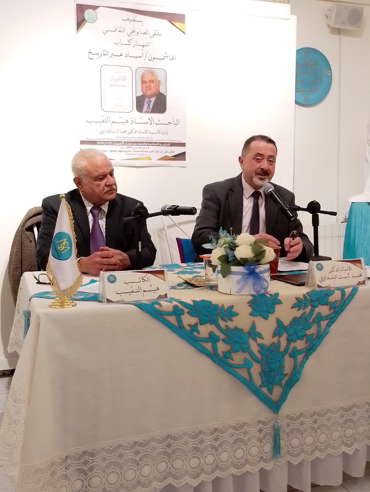 - نظم ملتقى الصابونجي الثقافي، يوم السبت، حفل إشهار كتاب «الهاشميون… أسياد عبر التاريخ» للباحث الأستاذ هيثم النقيب،المقيم في كندا بحضور نخبة من المثقفين والباحثين والمهتمين بالشأنين التوثيقي والتاريخي.