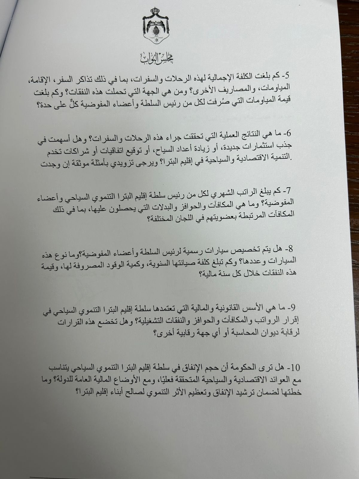 10- هل ترى الحكومة أن حجم الإنفاق في سلطة إقليم البترا التنموي السياحي يتناسب مع العوائد الاقتصادية والسياحية المتحققة فعليًا، ومع الأوضاع المالية العامة للدولة؟ وما خطتها لضمان ترشيد الإنفاق وتعظيم الأثر التنموي لصالح أبناء إقليم