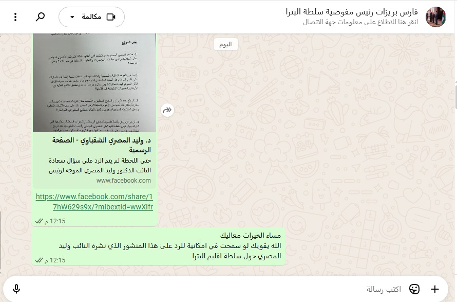 أخبار البلد تجدد التأكيد على أحقية سلطة اقليم البترا للرد على المادة الصحفية، والتي بدورها تواصلت مع رئيس سلطة اقليم البترا فارس بريزات ولكنه لم يتم الرد من خلال الواتساب والاتصال..