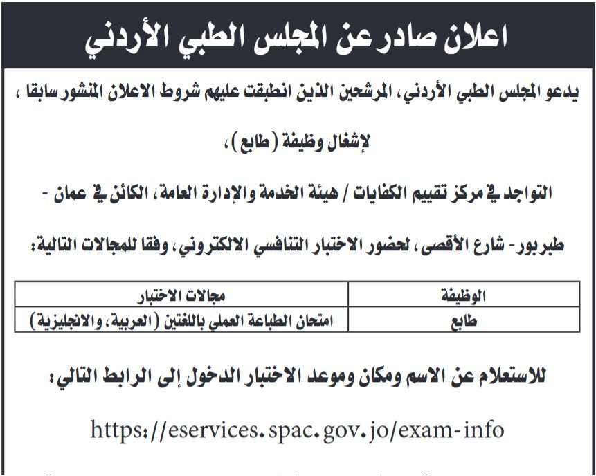هذا، ودعت دوائر حكومية المرشحين الذين انطبقت عليهم شروط الاعلان المنشور سابقا للامتحان التنافسي.