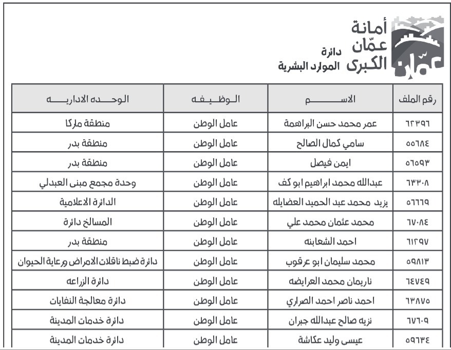 أمانة عمان تنذر موظفين  أسماء