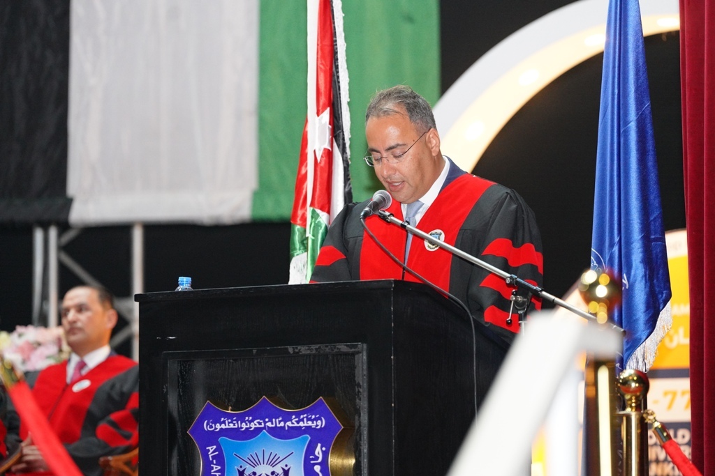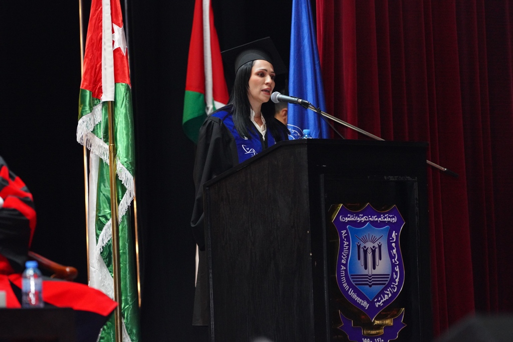 يسرّني ويشرّفني أن أرحّب بكم في هذا اليوم المميّز، الذي نلتقي فيه للاحتفاء بتخريج فوج جديد من طلبة جامعة عمّان الأهلية، بعد مسيرةٍ علميةٍ حافلة بالاجتهاد والمثابرة، توّجت بالنجاح والتميّز.حيث نحتفل اليوم بتخريج نخبة من طلبة كلية الدراسات العليا، وكلية الآداب والعلوم، وكلية الحقوق، وكلية الأعمال، وكلية العلوم التربوية، وكلية إدارة الضيافة والسياحة، في مناسبة لا تمثّل نهاية مرحلة تعليمية فحسب، بل بداية مسؤولية جديدة في خدمة المجتمع والمساهمة في مسيرة التنمية الوطنية.