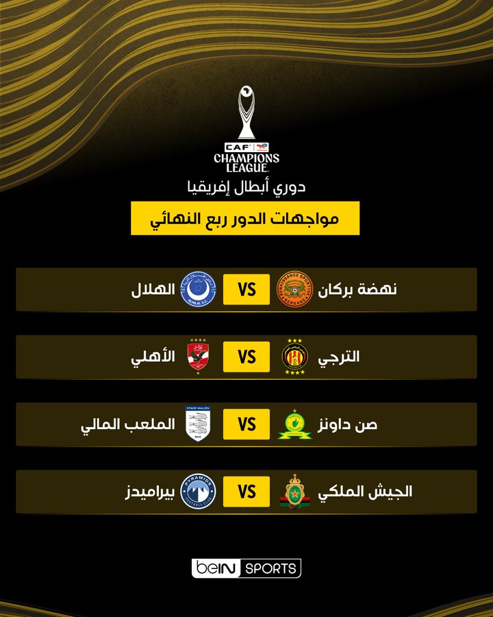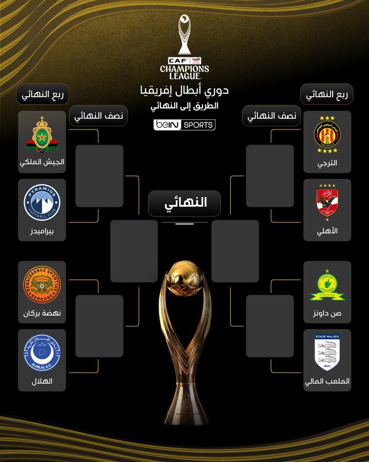 الفائز من مواجهة الترجي الرياضي (تونس) والأهلي (مصر) - المتأهل من مواجهة ماميلودي صنداونز (جنوب إفريقيا) والملعب المالي (مالي)