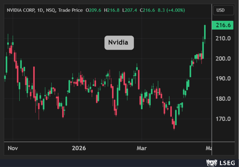وفي سياق آخر، أعلنتNvidiaبعد إغلاق الجلسة أن دونالد روبرتسون سيتقاعد من منصبه كنائب رئيس ومدير تنفيذي اعتبارًا من 4 مايو 2026 وتعيين سكوت غاويل نائبًا للرئيس ومديرًا تنفيذيًا اعتبارًا من نفس التاريخ.