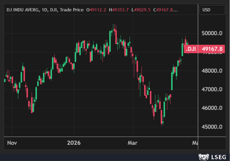 تراجع مؤشر الداو جونز بنسبة 0.13% أي ما يعادل 63 نقطة في جلسة الإثنين مسجلاً ثالث خسارة يومية على التوالي.