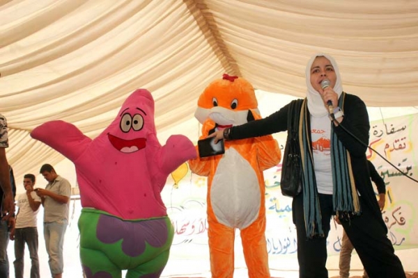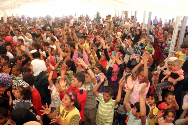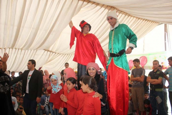 الممثلان خضرة وزعل يشاركان اطفال مخيم الزعتري فرحة