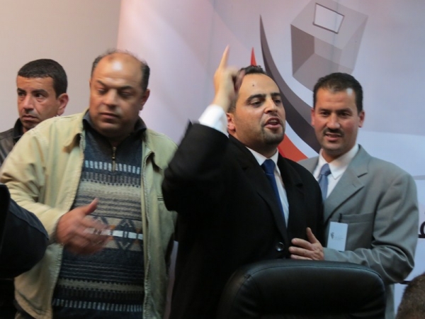 واثناء انعقاد المؤتمر قام رئيس القائمة بالصراخ متهماً محاولة موظفين من الهيئة منعه من دخول القاعة بعد طرده من الناطق الاعلامي بإسم الهيئة حسين بني هاني