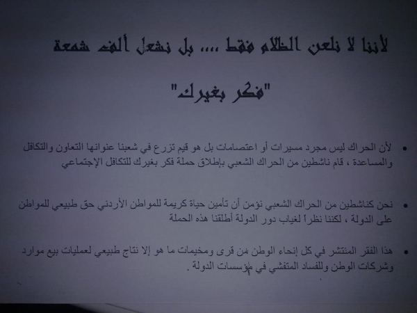 أعلنت حملة 'فكر بغيرك' انها ستقوم بتوزيع المساعدات على الأسر والعائلات المحتاجة أيام الأربعاء والخميس والسبت وفق البرنامج التالي: