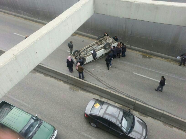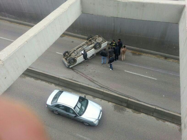 انقلاب سيارة في نفق الدوار السابع .. صور
