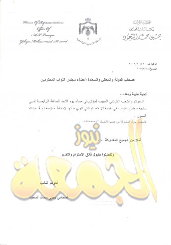 السعود يدعوا النواب و الشعب الاردني لمؤازرتة في إسقاط دولة النسور .. وثيقة
