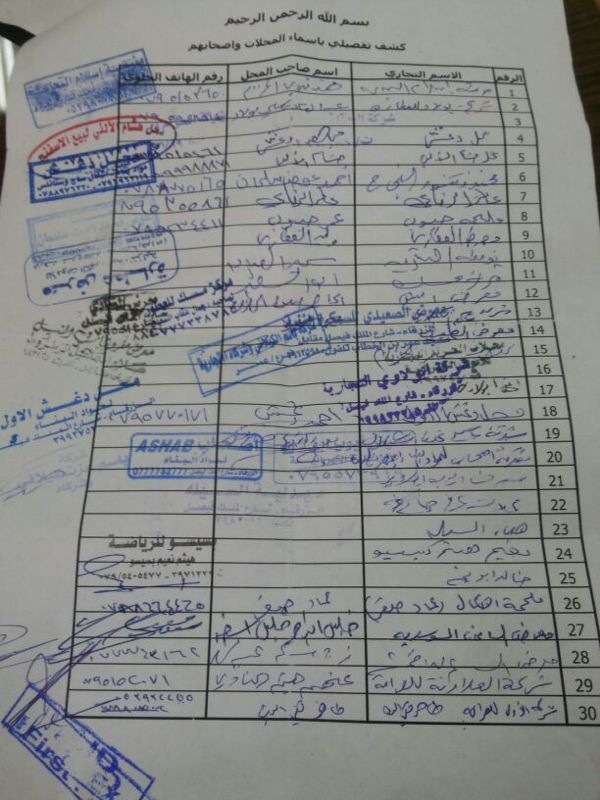 • مرفق كشف تفصيلي باسماء المحلات وأصحابها .