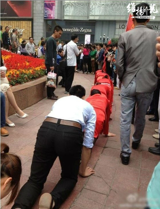 إذ كنت تعتقد أن رئيسك في العمل شخص سيئ، فقد تغير رأيك بعد مقارنته برئيس هذه الشركة الصينية لمستحضرات التجميل فى تشونغتشينغ، الذي أجبر مؤخرا موظفيه على الركوع والزحف على أيديهم وأرجلهم في حي تجاري مزدحم بالمدينة، أمام مئات المتفرجين.
