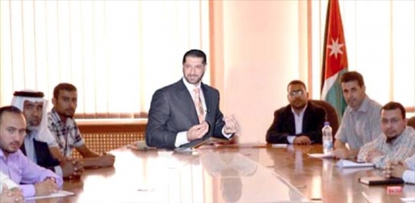 الصورة جاءت ضمن خبر عن تدريب وزارة الاوقاف لموظفيها لاستخدام الموقع الالكتروني لتسجيل الحجاج، مظهرة الوزير القضاة مترأساً جلسة.