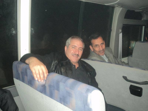 رئيس لجنة العلاقات الخارجية في مجلس النواب النائب بسام المناصير، ووزير الخارجية ناصر جوده يجلسان في مقعدين متجاورين في الباص..