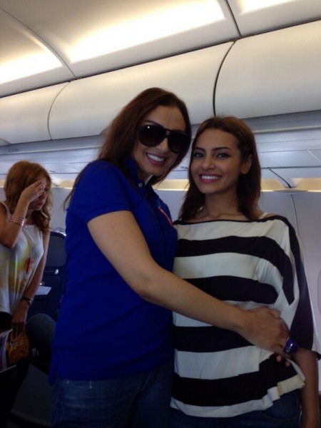 وعلى متن الطائرة نفسها التقت أنغام ايضاً بالفائزة في أراب آيدول الموسم الأول كارمن سليمان حيث نشرت صوراً مع المشتركين الأثنين.